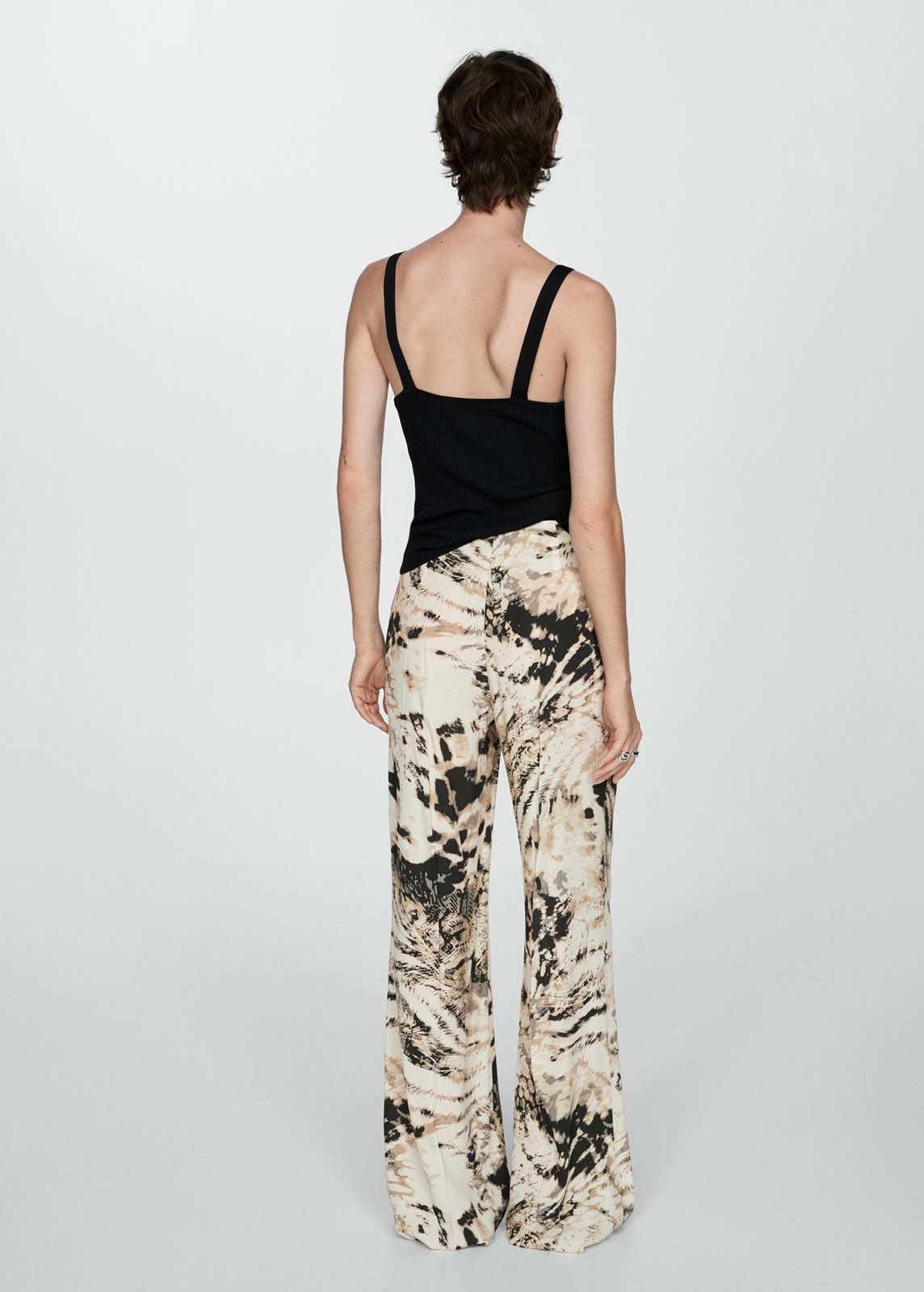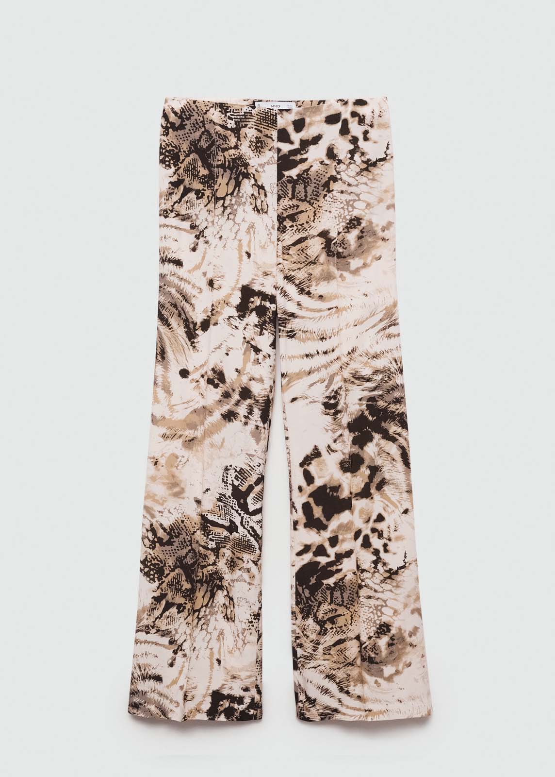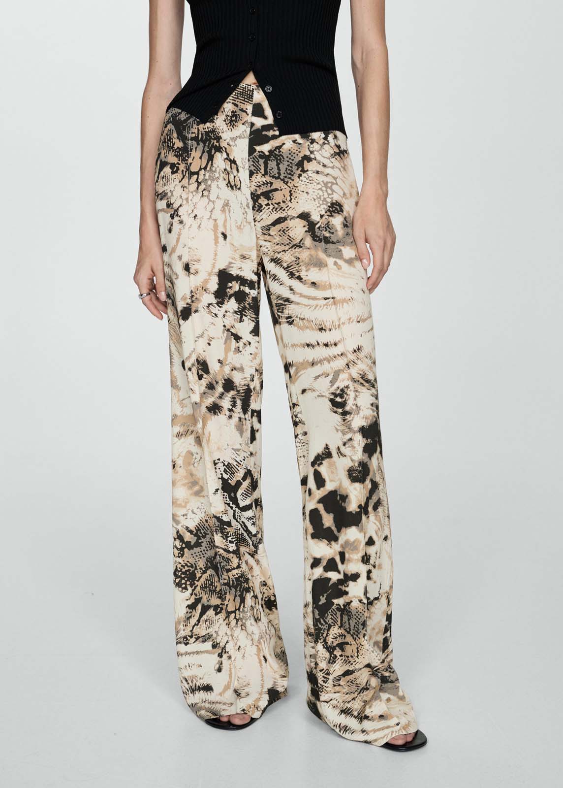 Diseño wideleg,Tejido fluido,Tiro medio,Estampado animal print,Cierre cremallera invisible en el lateral,Diseño estampado