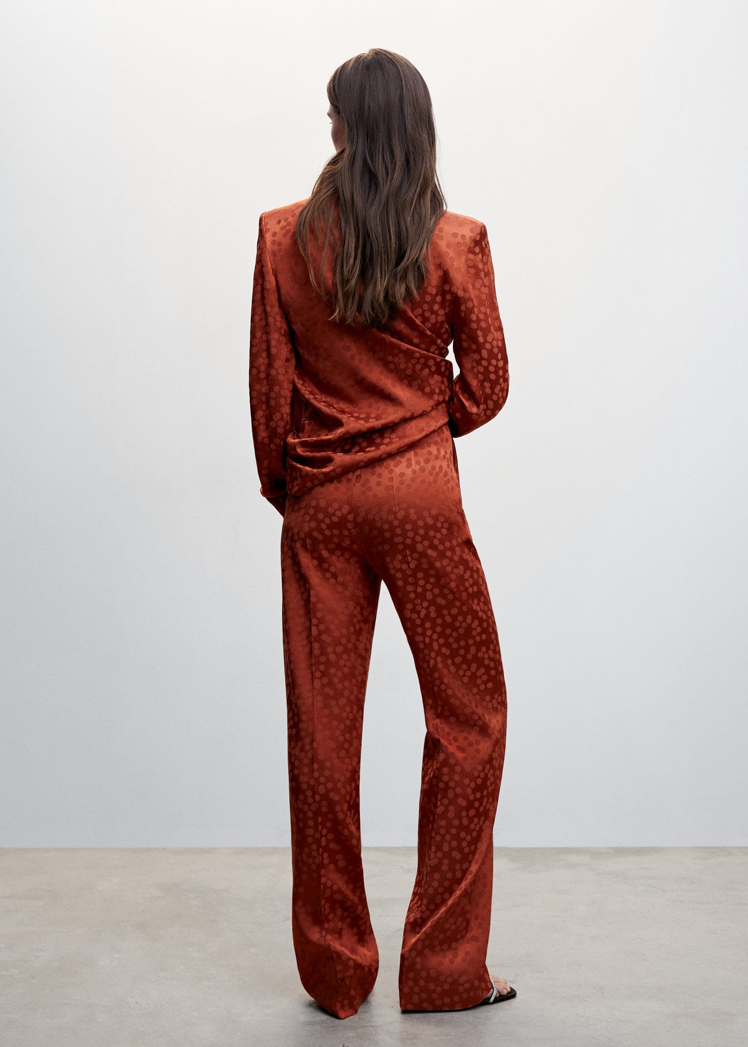 • Pantalón satinado topos- Tejido satinado,Tejido fluido,Diseño largo,Trabillas,Dos bolsillos laterales,Cierre oculto de botón, gancho y cremallera,Tiro alto,Estampado topos,Diseño recto,Total look,Disponible Plus- Lavar a maquina max 30°c, No usar lejia, Plancha max 150°c, Limpiar en seco percloroetileno, No se puede usar secadora- COMPOSICIÓN: 100% VISCOSA FORRO: 100% POLIÉSTER - 882mm x 1209mm-