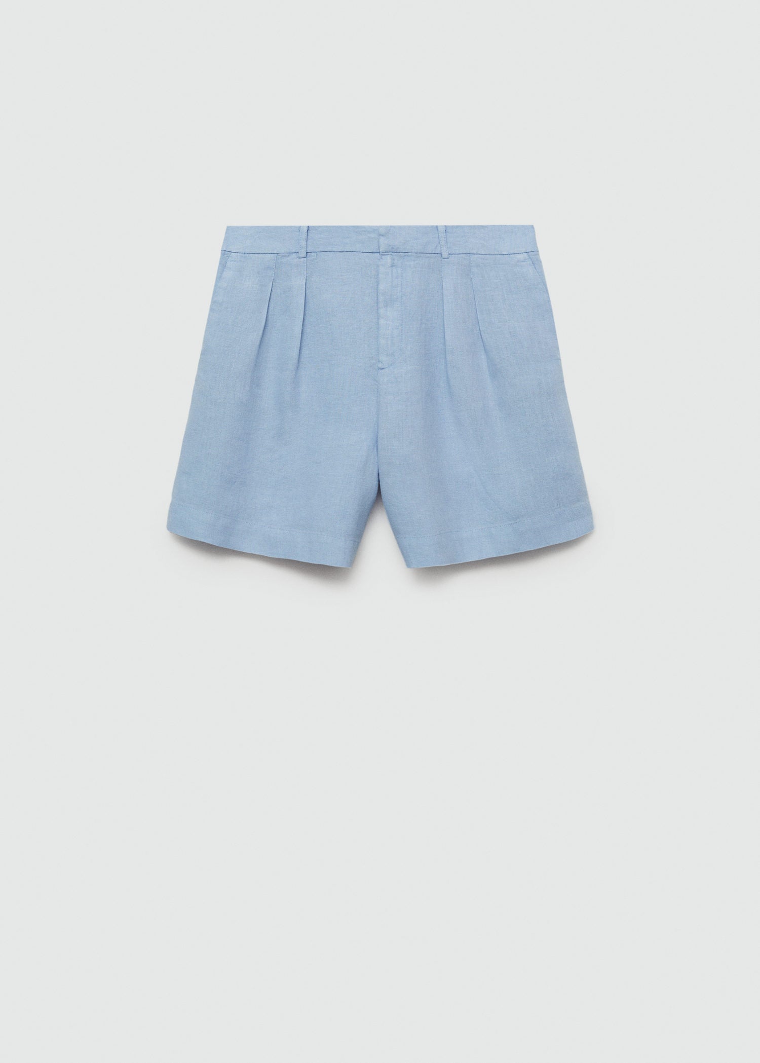 Trabillas,Tiro medio,Detalle de pinzas,Diseño corto,Tejido 100% de lino,Dos bolsillos laterales,Cierre oculto de botón, gancho y cremallera,Diseño recto