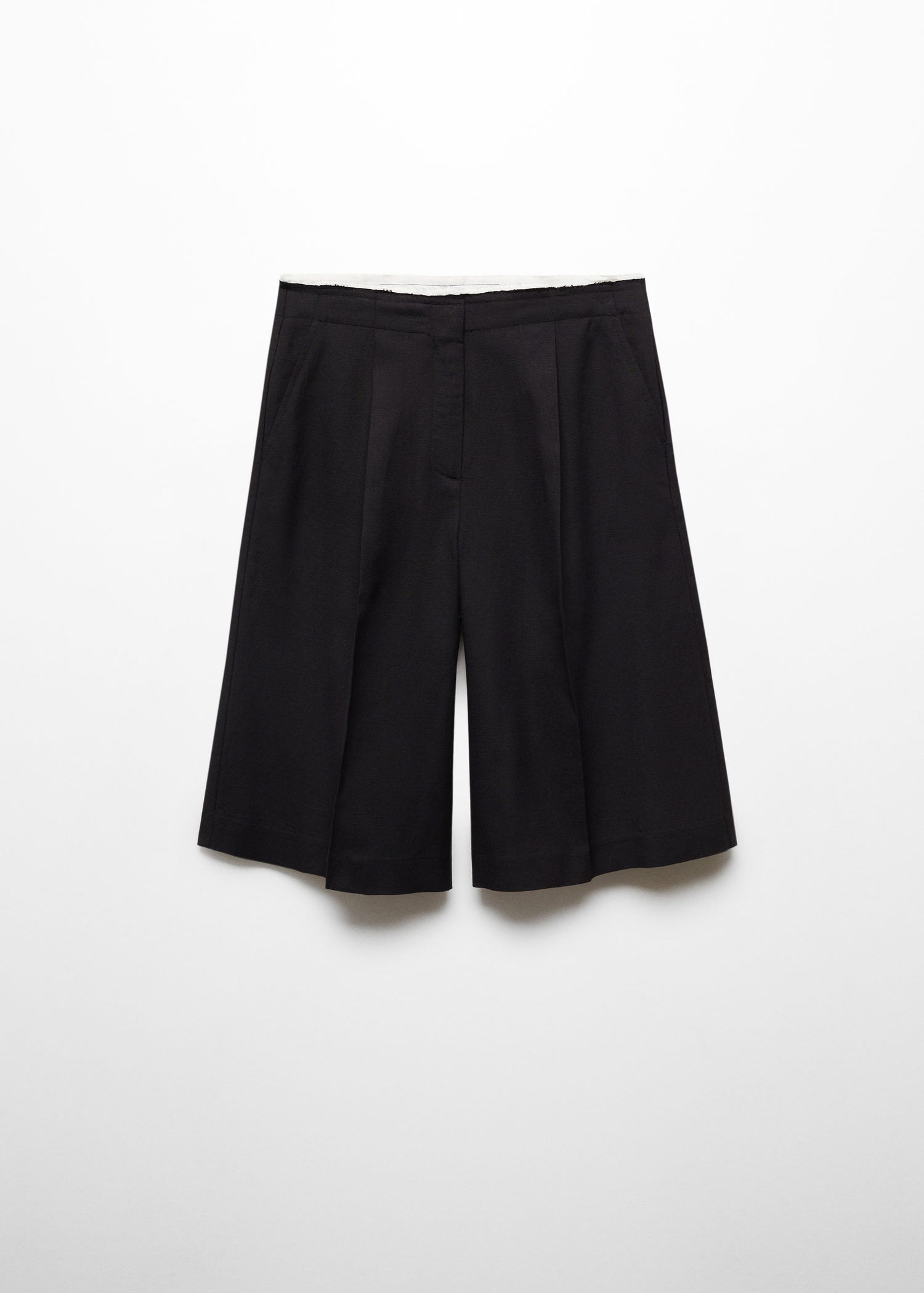 Tejido mezcla de lino,Diseño recto,Tejido fluido,Dos bolsillos laterales,Dos bolsillos de ribete en la parte posterior,Cierre oculto de botón, gancho y cremallera,Detalle de pinzas,Ribete en contraste,Diseño midi