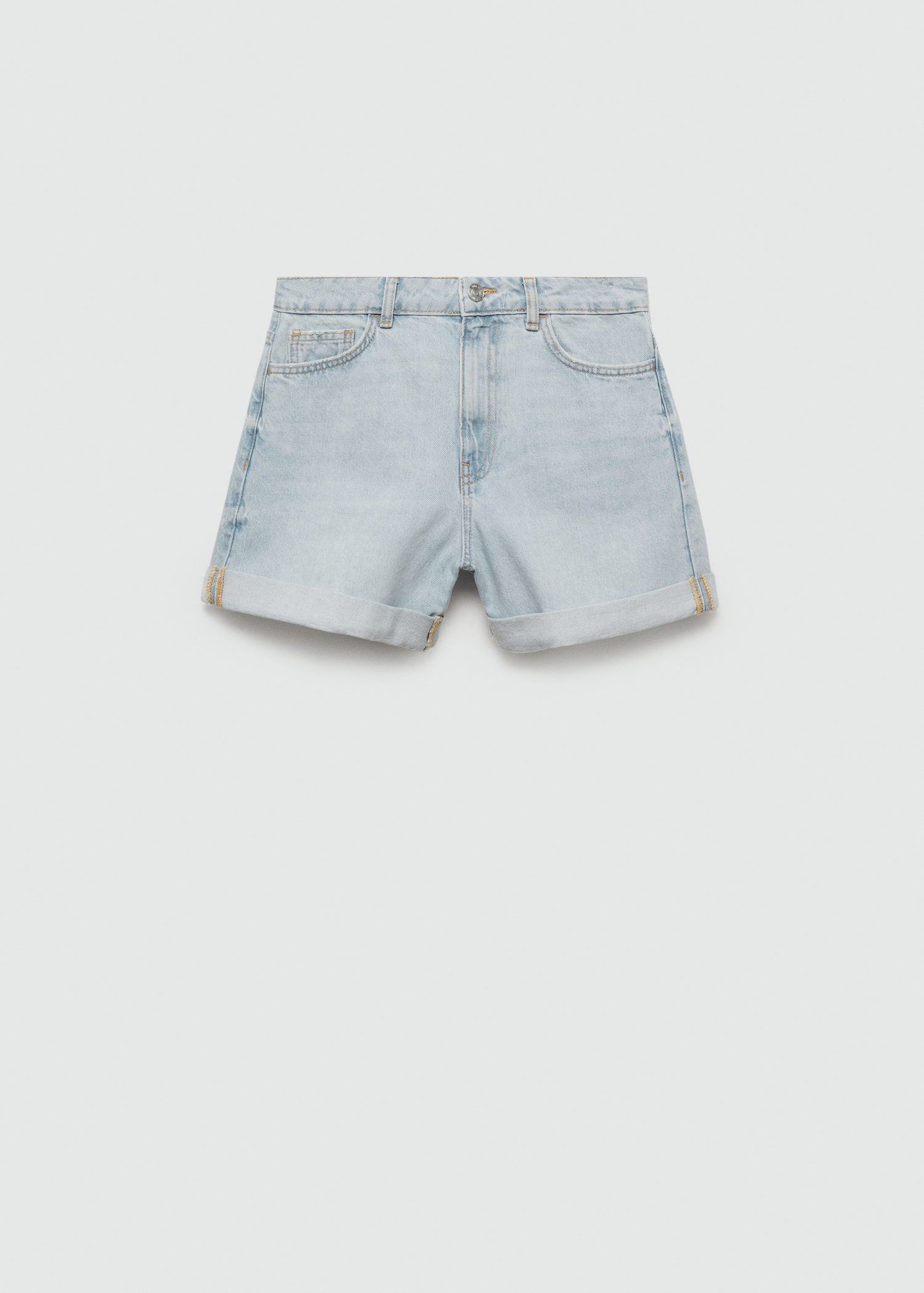 Cierre de cremallera y botón,Trabillas,Diseño corto,Cinco bolsillos,Mom-fit,Tejido de algodón estilo tejano vaquero,Bajo con vuelta,Tiro alto