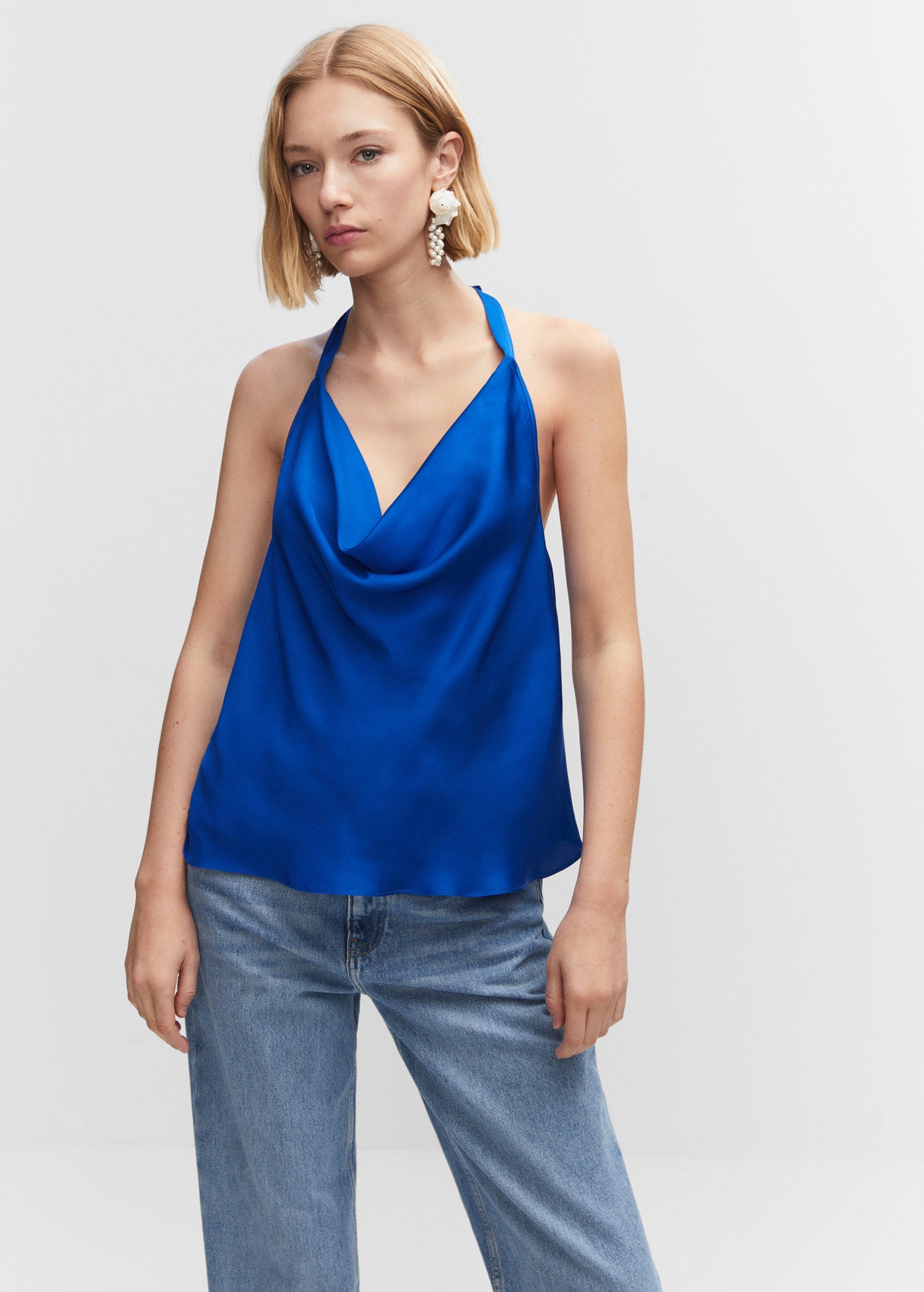 • Top satinado cuello drapeado- Tejido satinado,Tejido fluido,Tejido ligero,Diseño largo,Tirantes finos,Cierre de lazo en el cuello,Diseño recto,Espalda con escote,Sin mangas,Cuello drapeado- No usar lejia, Plancha max 110°c, Lavar a maquina max 30°c centrifugado corto, Limpiar en seco percloroetileno, No se puede usar secadora- COMPOSICIÓN: 100% VISCOSA VIVO: 100% VISCOSA - 366mm x 360mm-