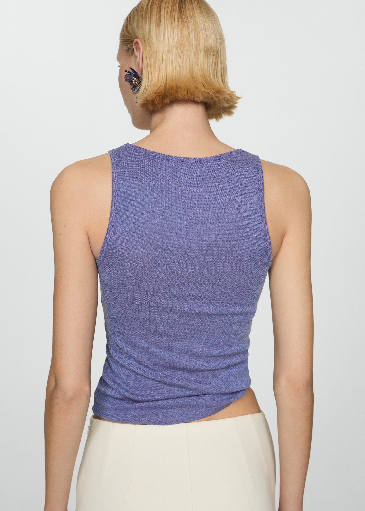 Tejido de punto,Diseño entallado,Tirantes finos,Tejido de lúrex,Sin mangas,Cuello redondo