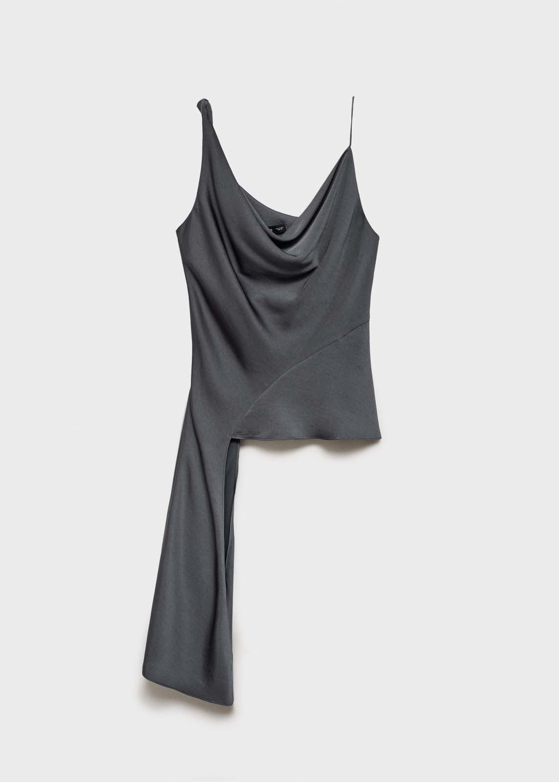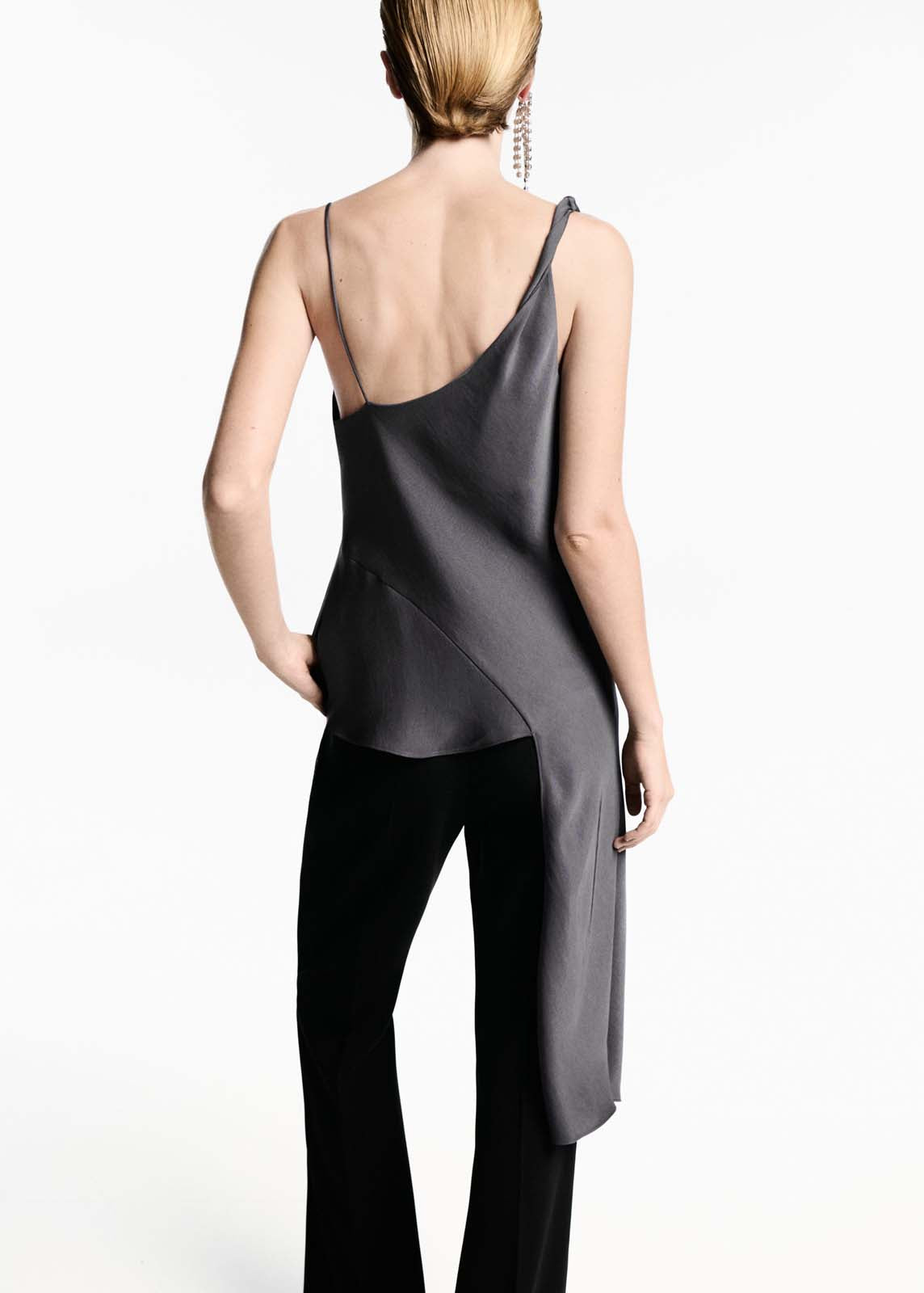Colección fiesta y ceremonia,Tirantes finos,Cuello drapeado,Sin cierre,Tejido satinado,Diseño asimétrico,Detalle de lazada lateral,Sin mangas,Diseño entallado,La modelo mide 1,81 y lleva una talla S/36