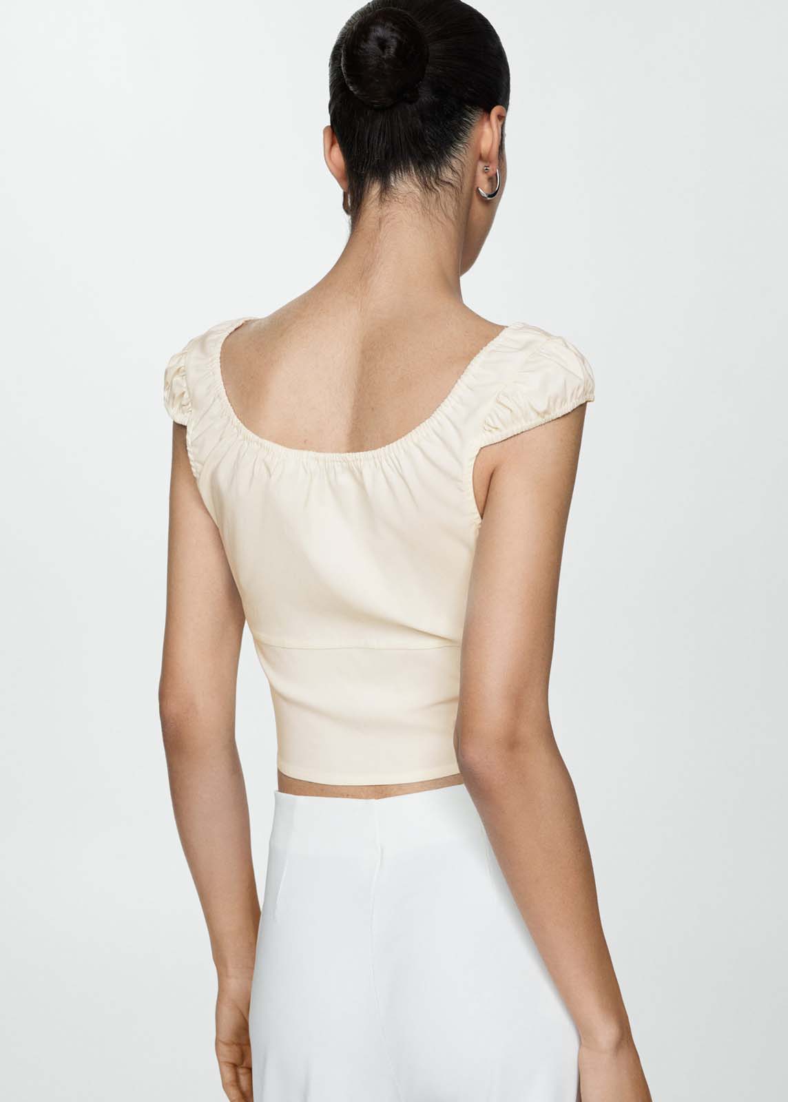 Lazo decorativo,Manga corta,Diseño crop,Detalles fruncidos,Cierre delantero con botones,Diseño entallado,Escote redondo