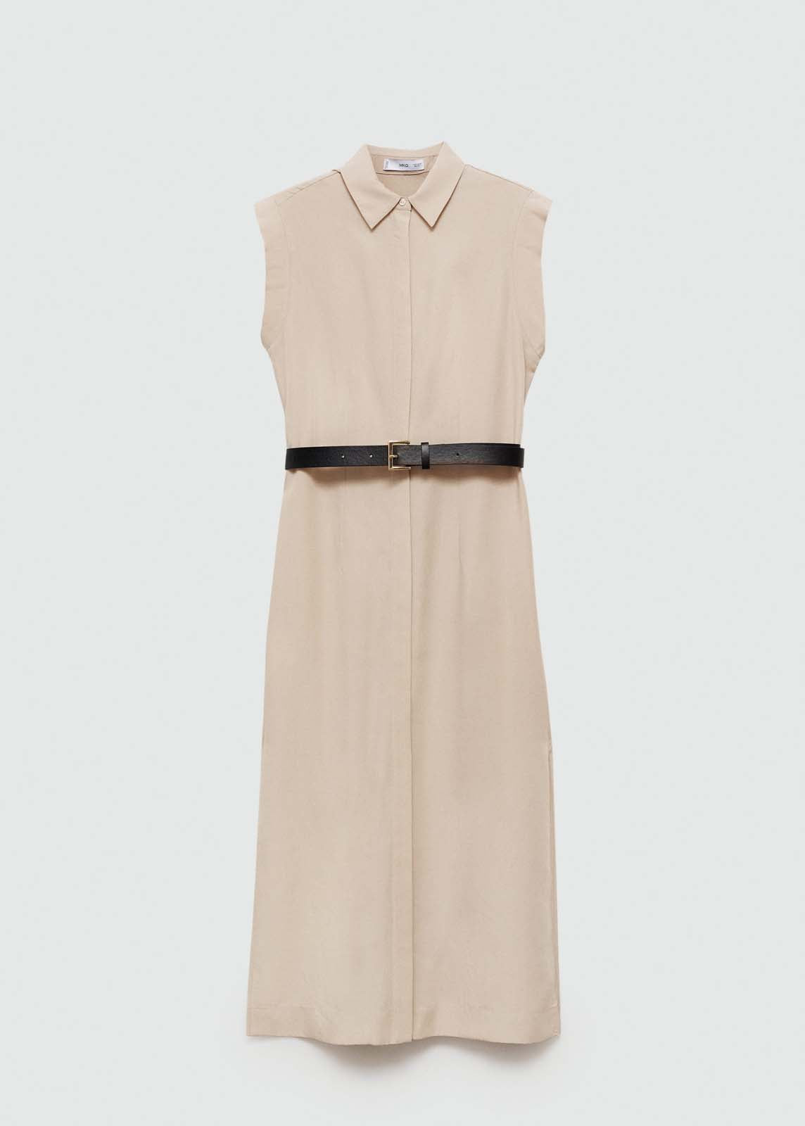 Manga corta,Cinturón ajustable,Tejido mezcla de lino y lyocell,Diseño recto,Cuello camisero,Diseño midi,Bajo con aberturas laterales,Cierre delantero con botones