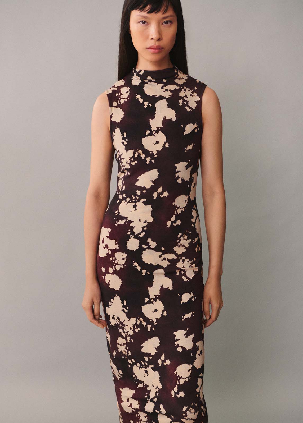 Sin cierre,Tejido ligero,Diseño midi,Sin mangas,Cuello perkins,Diseño entallado,La modelo mide 1,77 y lleva una talla S/36,Diseño estampado