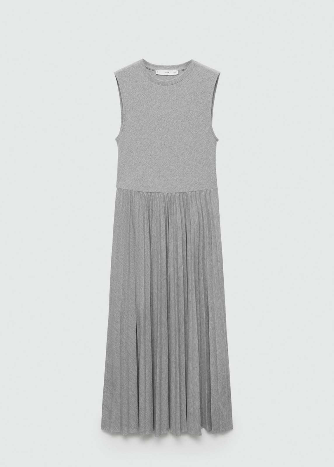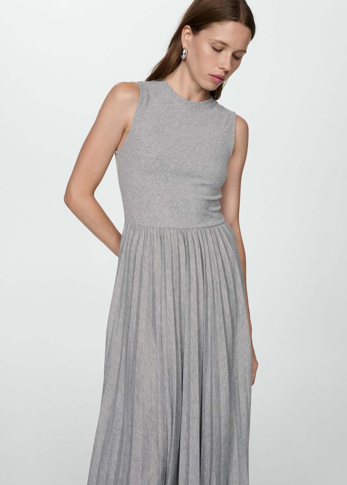 Tejido fluido,Diseño plisado,Cuello redondo,Diseño largo,Sin mangas