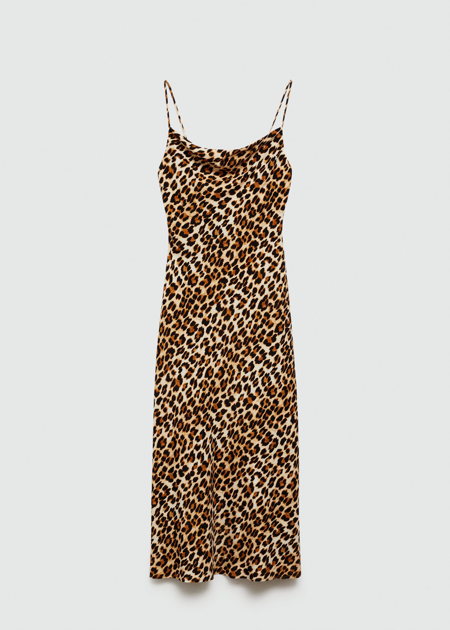 Tejido fluido,Tejido animal print,Tirantes finos,Sin cierre,Diseño de leopardo,Diseño recto,Diseño largo,Sin mangas,Escote redondo