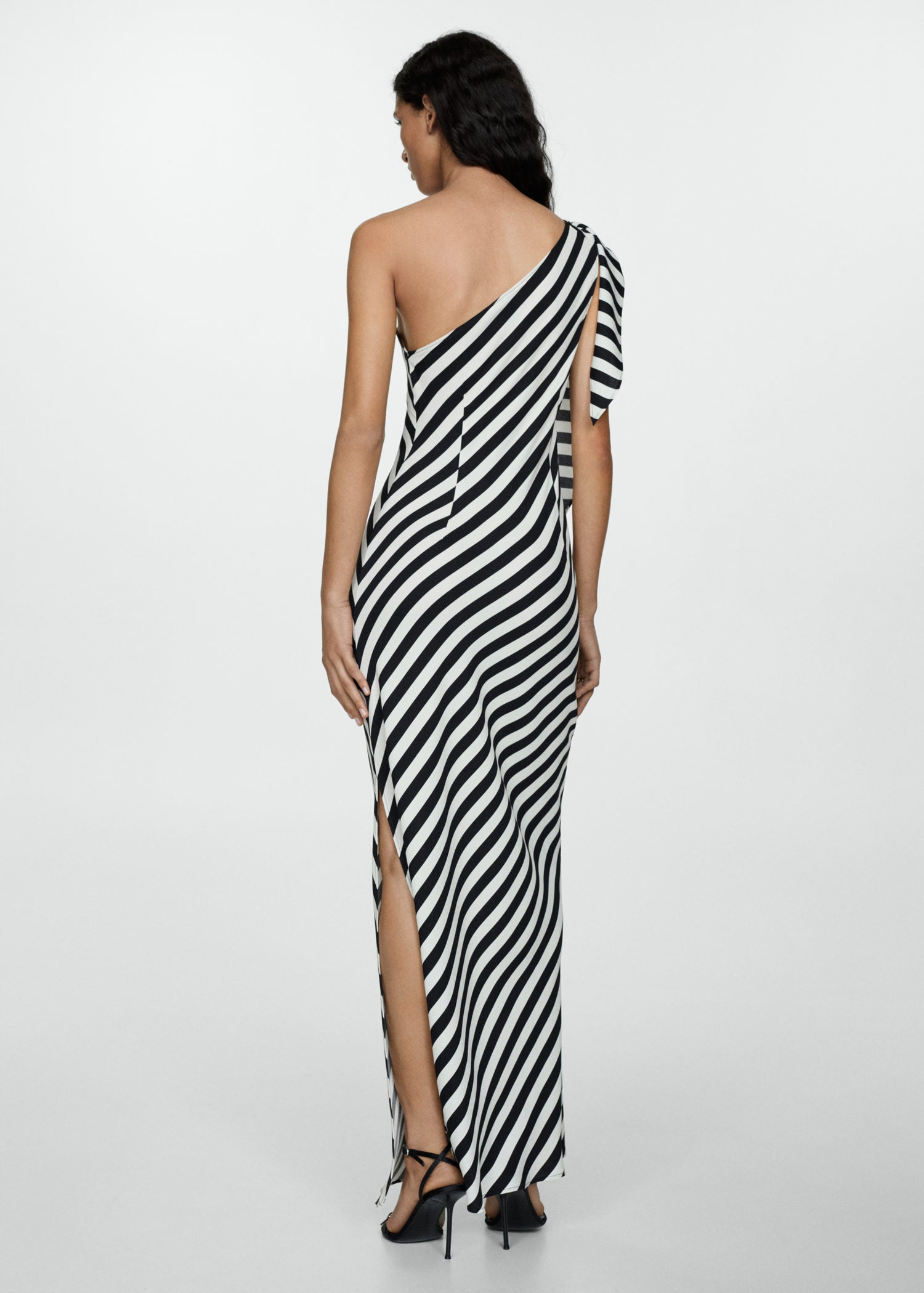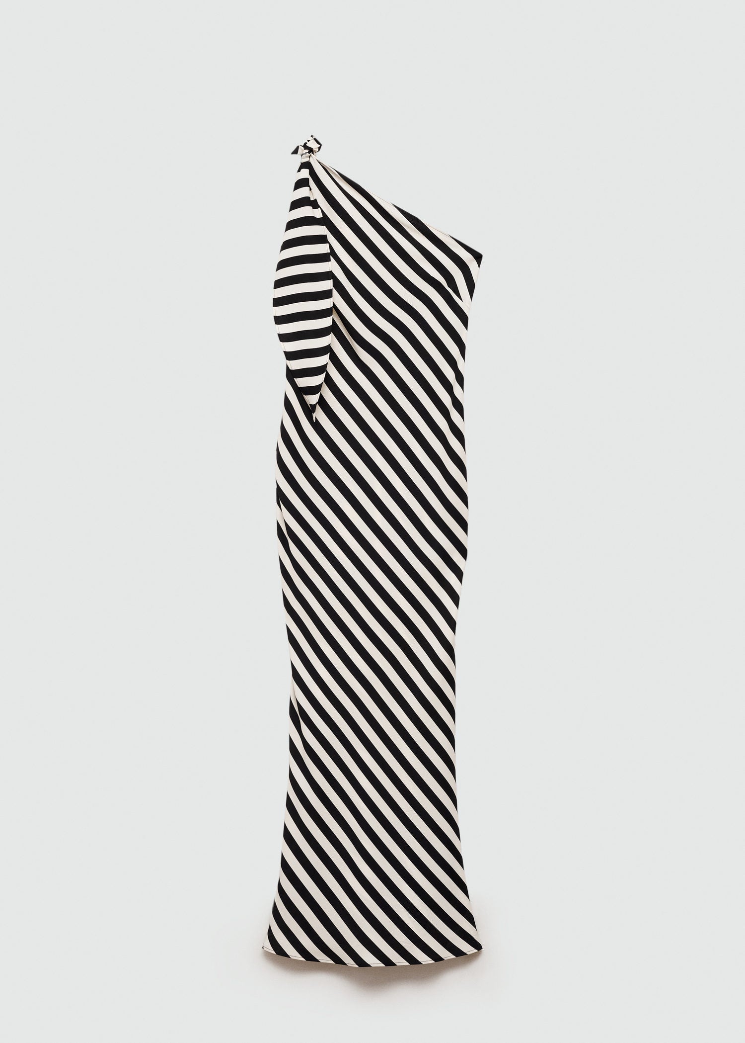 Colección fiesta y ceremonia,Estampado de rayas,Tejido fluido,Tirante ancho,Escote asimétrico,Tirantes con cierre de nudo,Diseño largo,Sin mangas,Diseño entallado