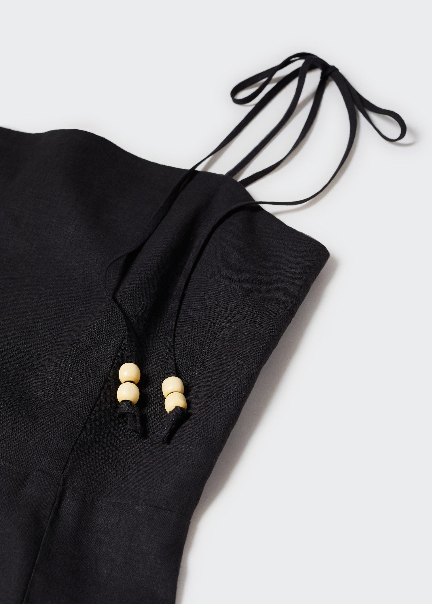 Vestido lino detalle abalorios- Tejido mezcla de lino,Diseño recto,Detalle de abalorios,Cierre lateral de cremallera,Diseño corto,Cuello recto,Tirantes finos con cierre de lazo,Festival Season,Looks de oficina- No usar lejia, Plancha max 110°c, Lavar a maquina max 30°c centrifugado corto, Limpiar en seco percloroetileno, No se puede usar secadora- COMPOSICIÓN: 55% LINO, 45% VISCOSA FORRO: 100% ALGODÓN - 687mm x 650mm-
