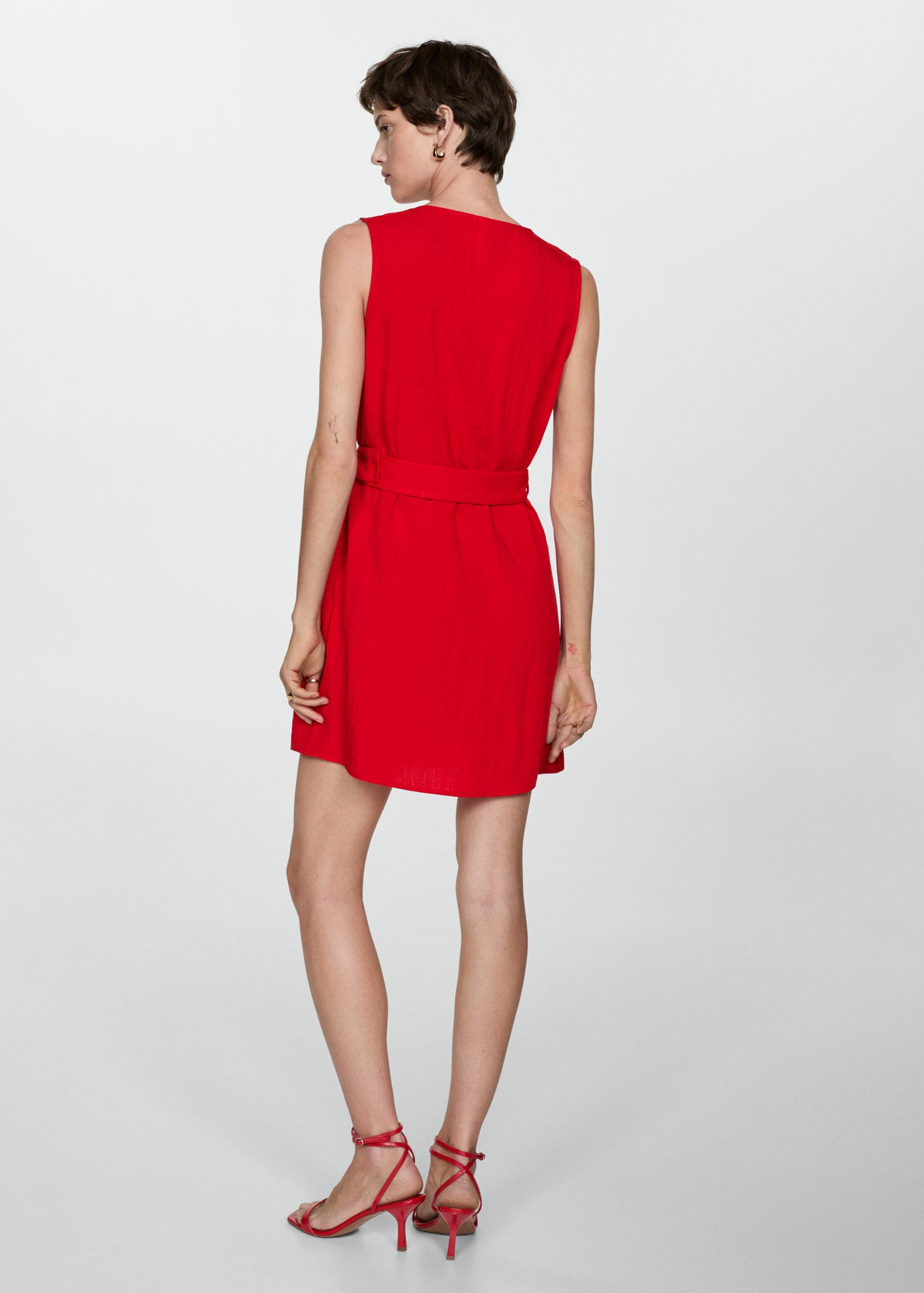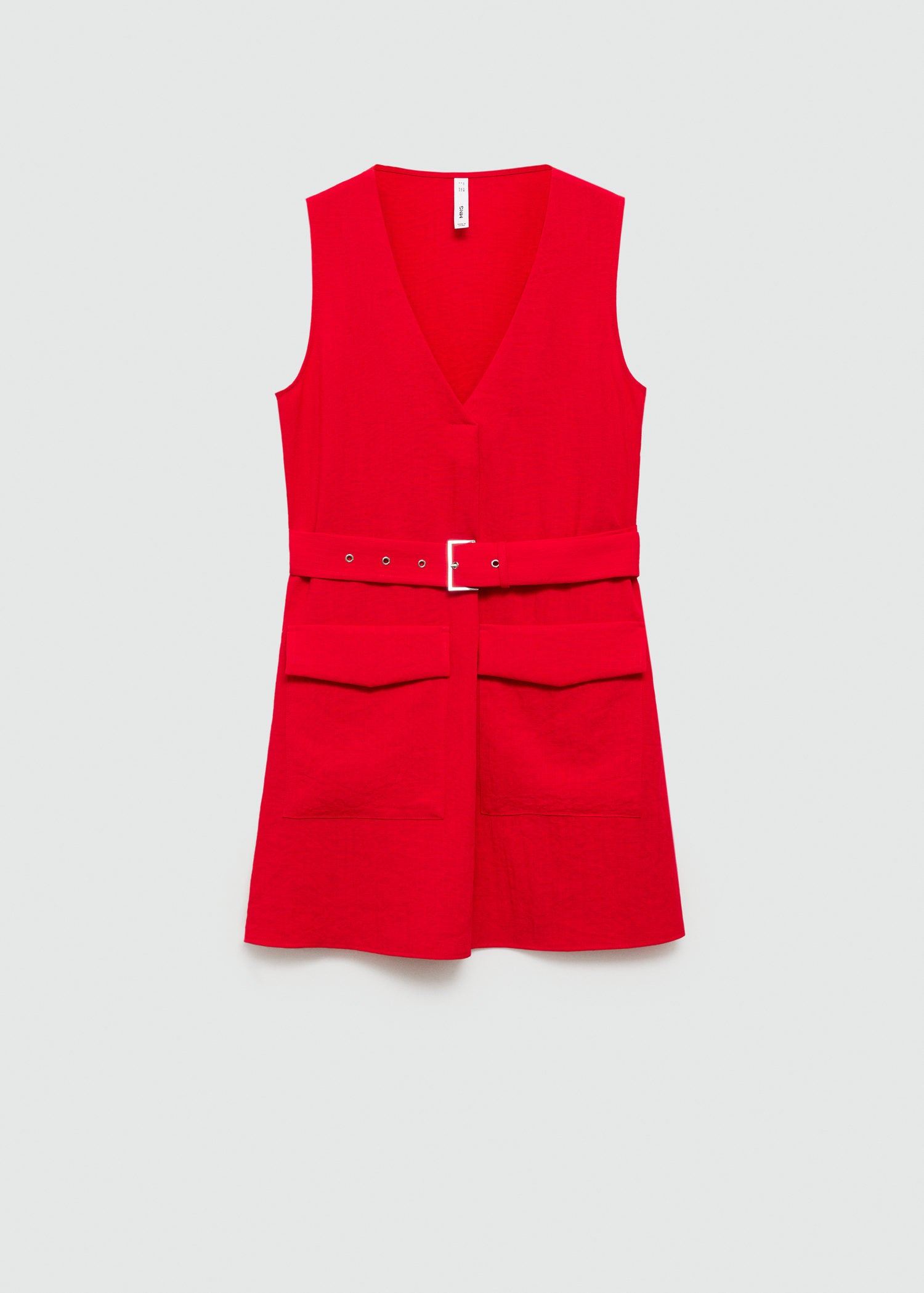 Tejido fluido,Cinturón decorativo,Cuello pico,Diseño corto,Tirantes anchos,Disponible Plus,Diseño recto,Sin mangas,Dos bolsillos de solapa en la parte delantera
