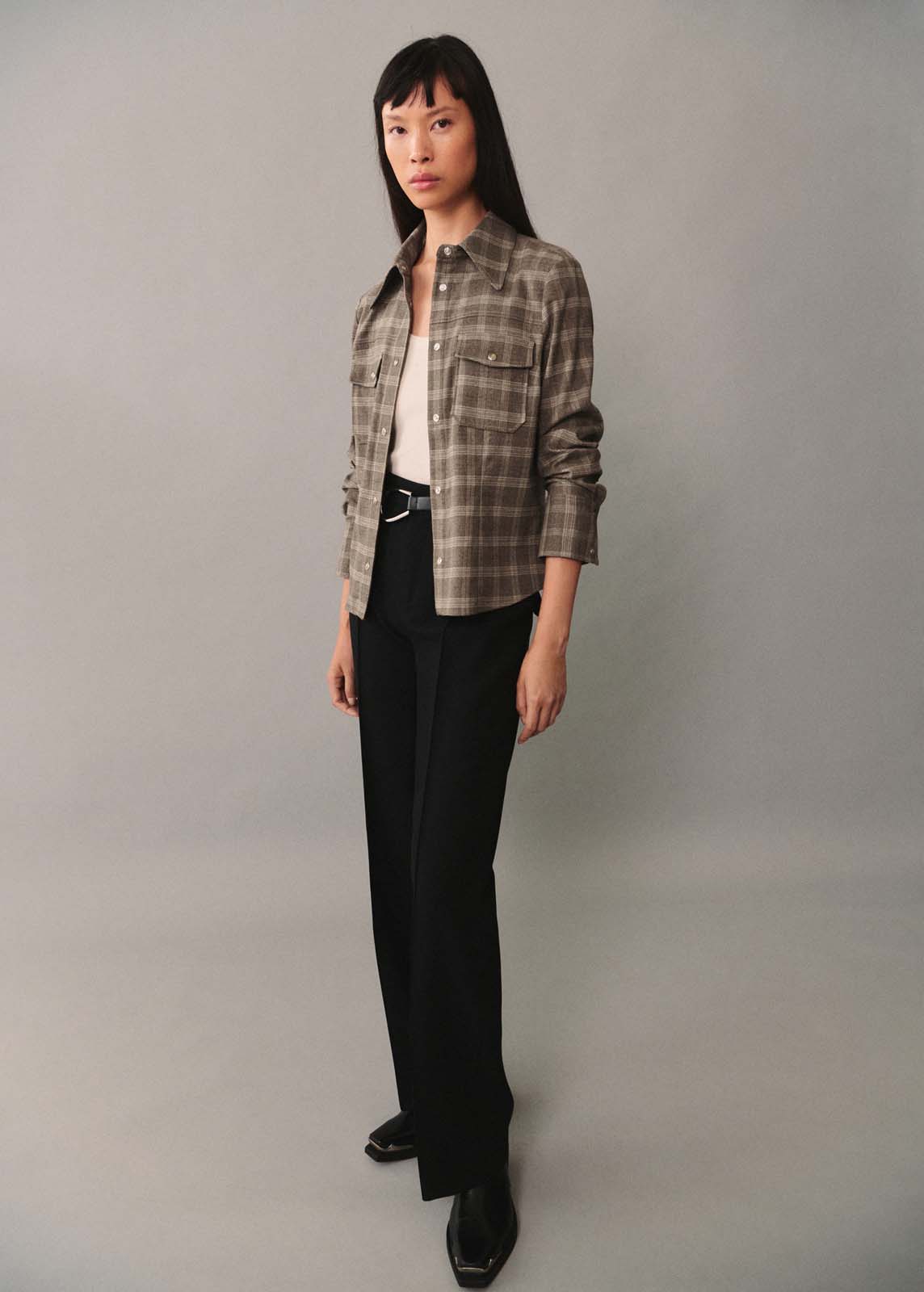 Dos bolsillos de parche en el pecho,Diseño de cuadros,Total look,Manga larga con puños abotonados,Diseño recto,Cuello camisero,Cierre delantero con botones,La modelo mide 1,77 y lleva una talla S/36