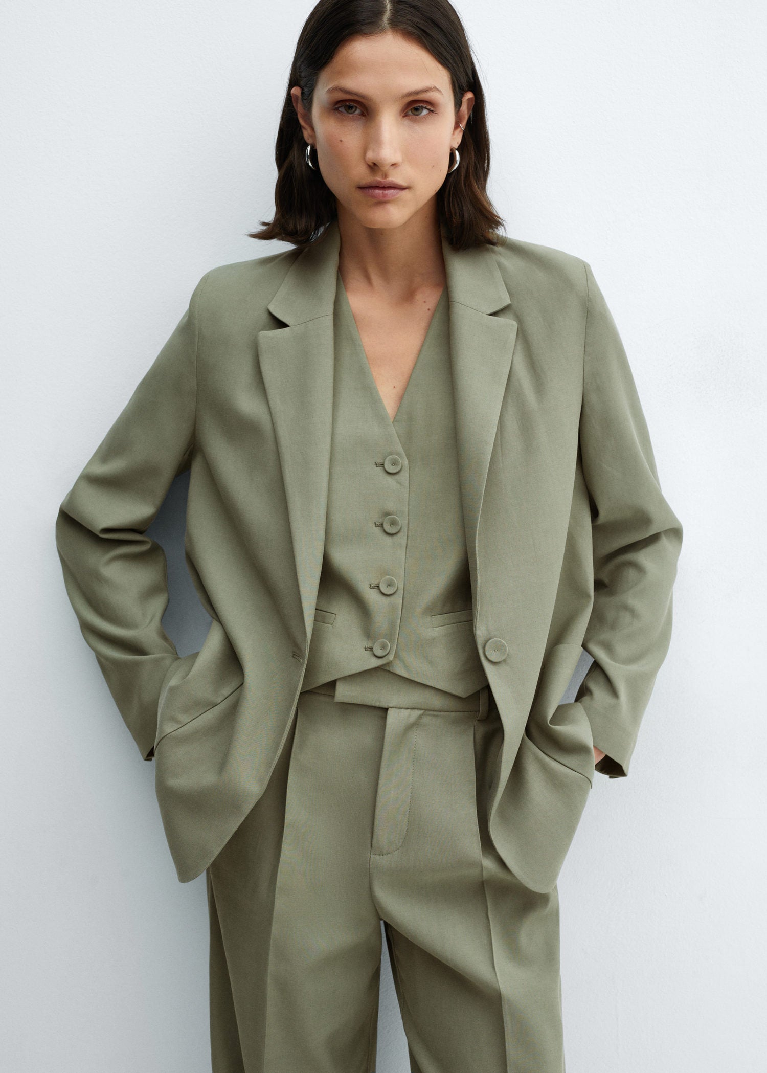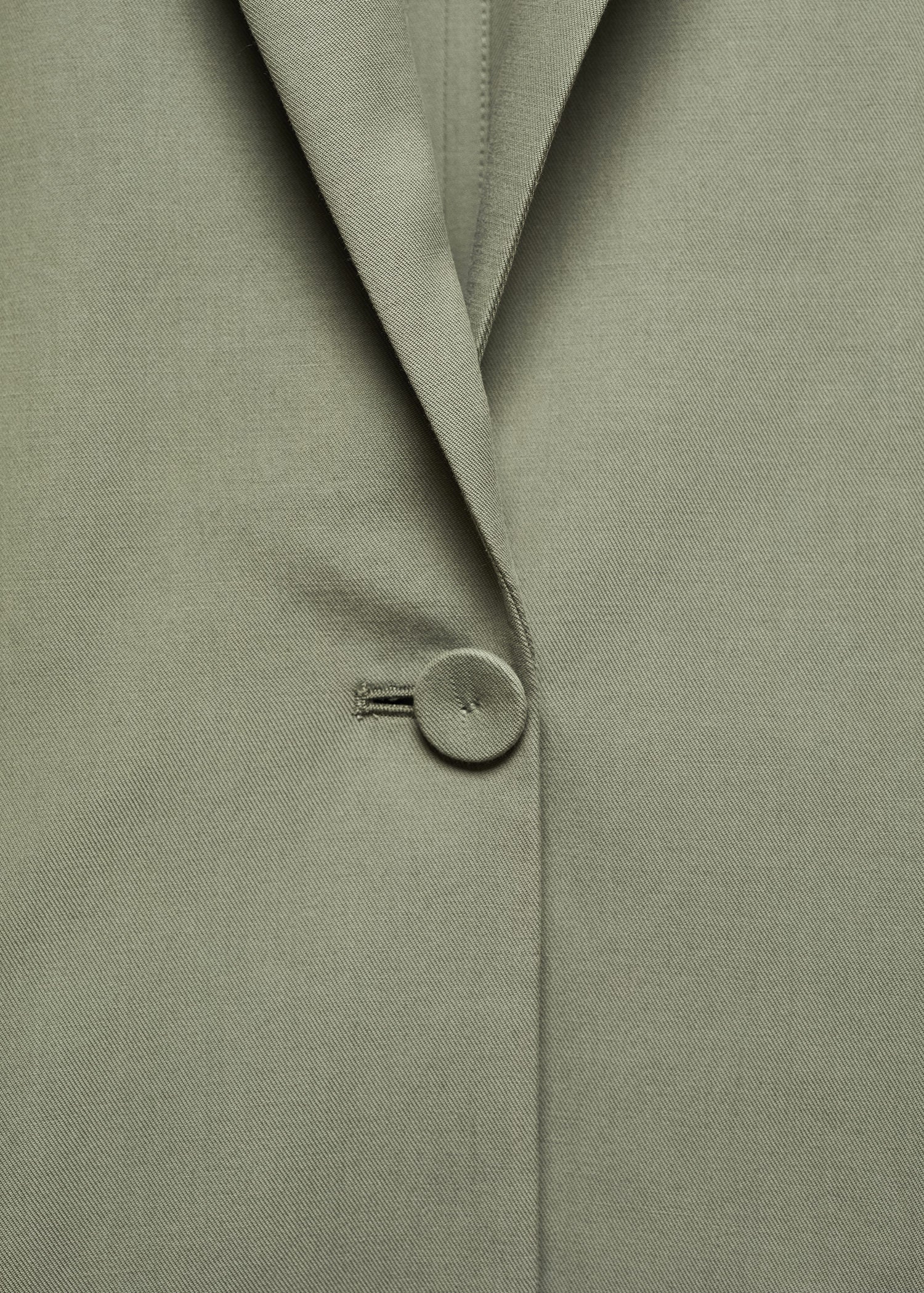 Manga larga con puños abotonados,Solapas con muesca,Forro interior,Dos bolsillos de parche en la parte delantera,Cierre de botón en la parte delantera,Diseño recto,Cuello pico con solapa,Tejido mezcla algodón y lyocell,Total look