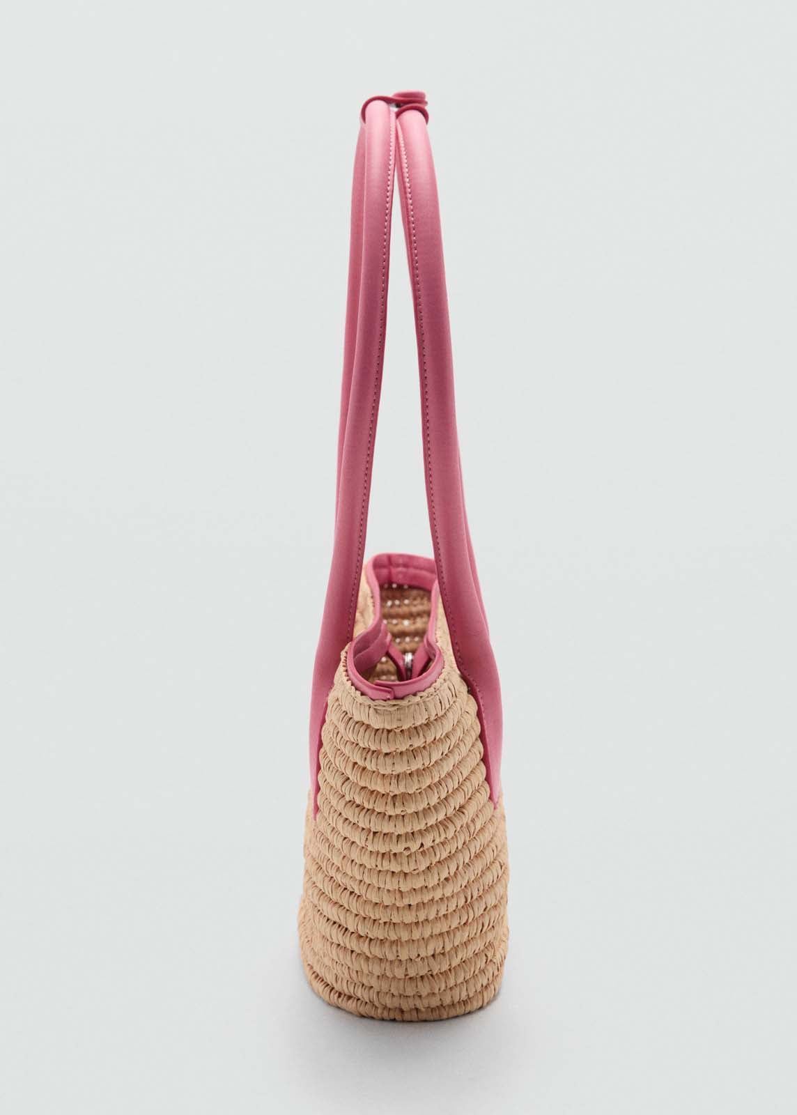 Tejido de fibra natural,Detalle en contraste,Tamaño pequeño,Doble asa corta,Cierre de imán interior