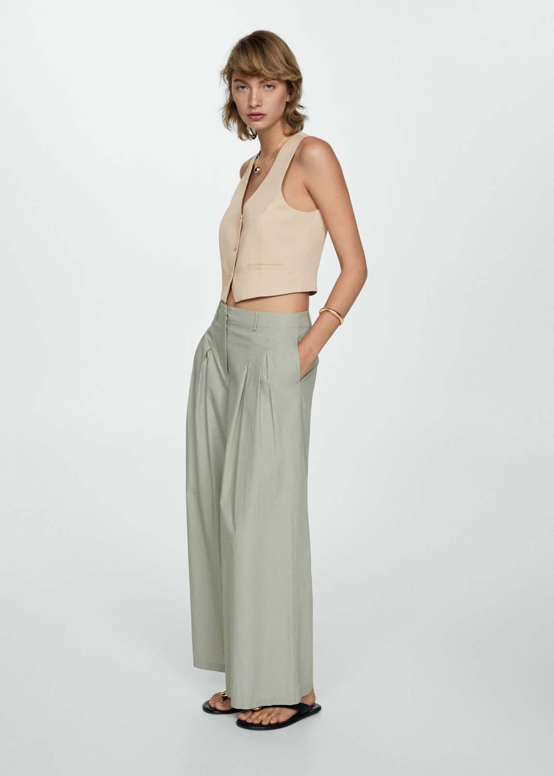 Cuello pico,Diseño crop,Tirantes anchos,Cierre de botón en la parte delantera,Tejido mezcla de lino y lyocell,Total look,Diseño recto