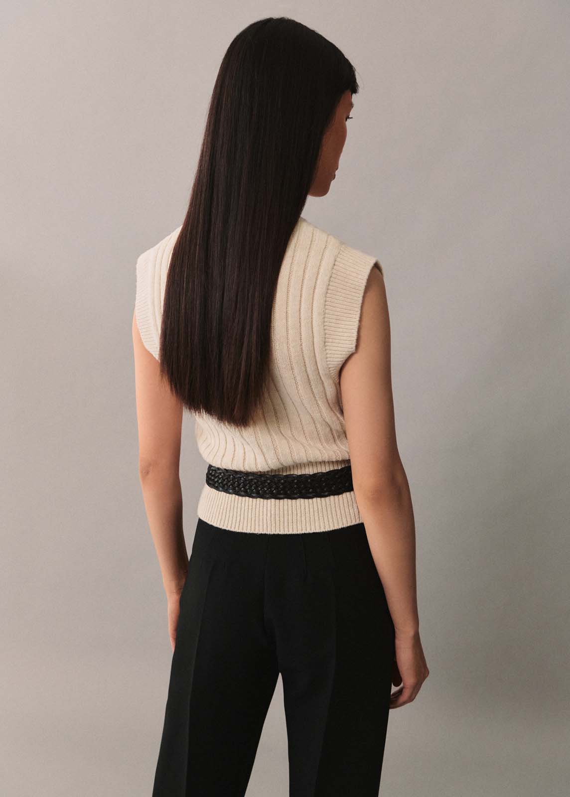 Diseño estándar,Tejido mezcla de lana,Cuello redondo,Diseño recto,Sin mangas,La modelo mide 1,77 y lleva una talla S/36,Terminaciones en canalé,Punto medio