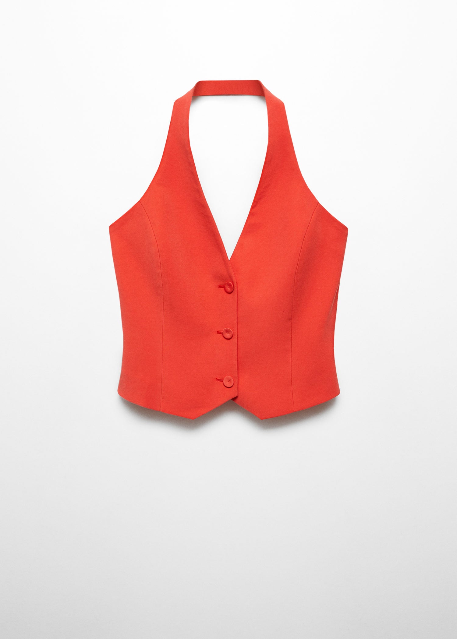 Cuello pico,Espalda abierta,Tirantes anchos,Forro interior,Diseño recto,Sin mangas,Estilo traje,Cierre delantero con botones,Looks de oficina