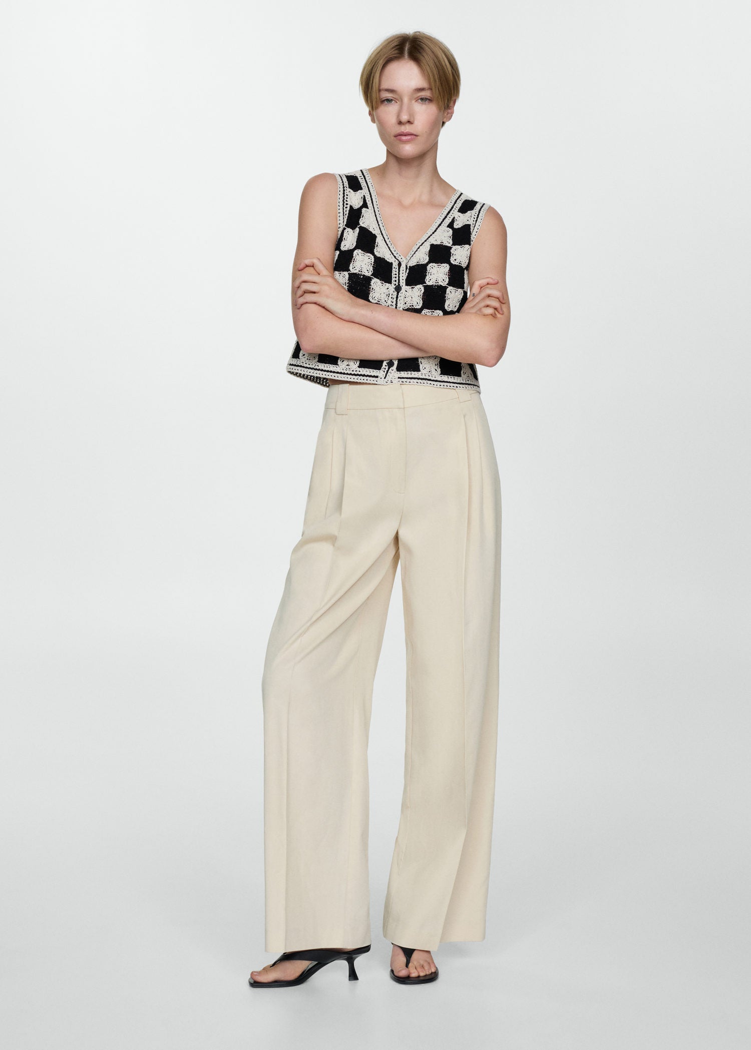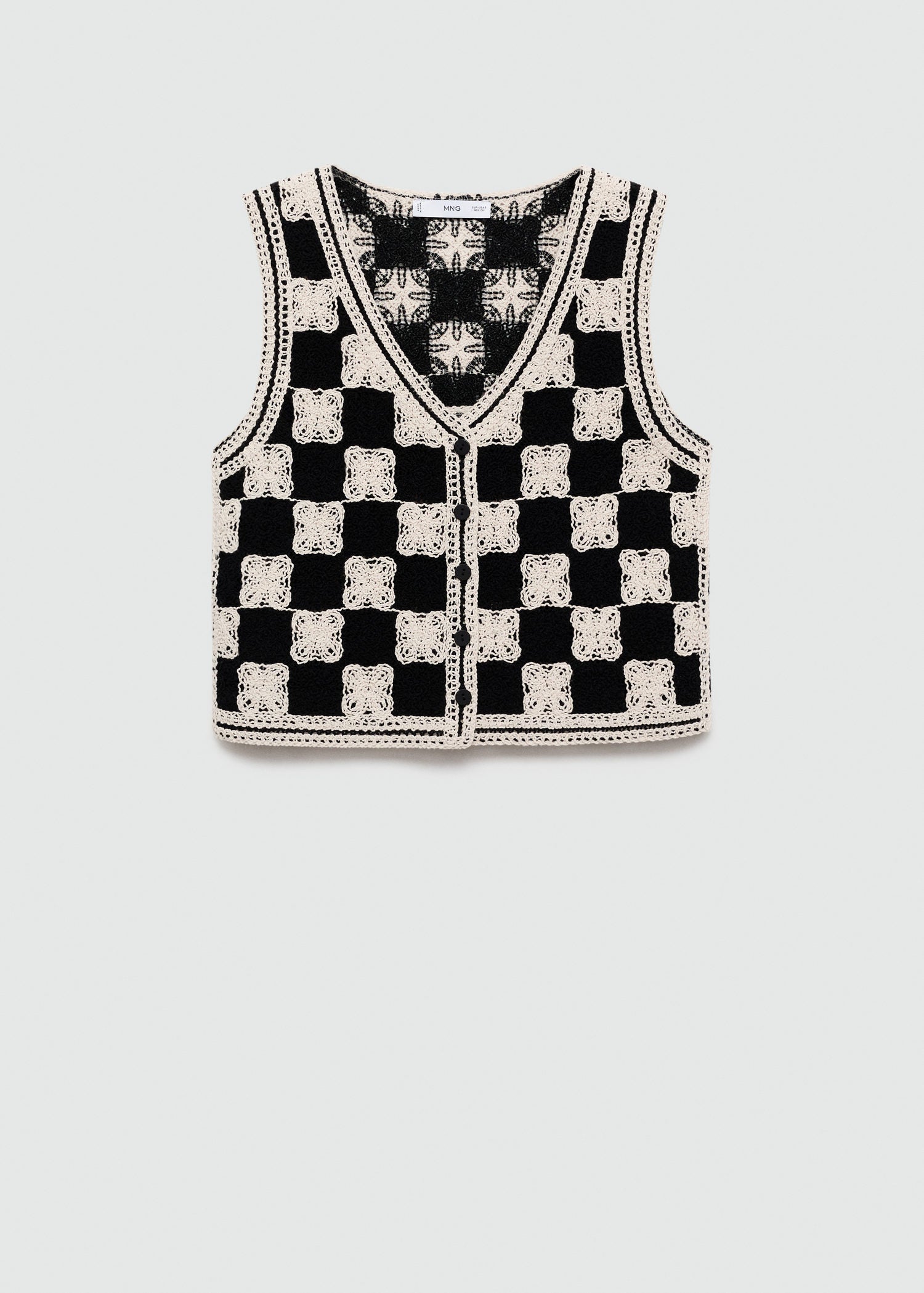 Tejido mezcla de algodón,Diseño crop,Escote de pico,Diseño combinado,Tejido de crochet,Diseño recto,Sin mangas,Total look,Cierre delantero con botones,Festival Season