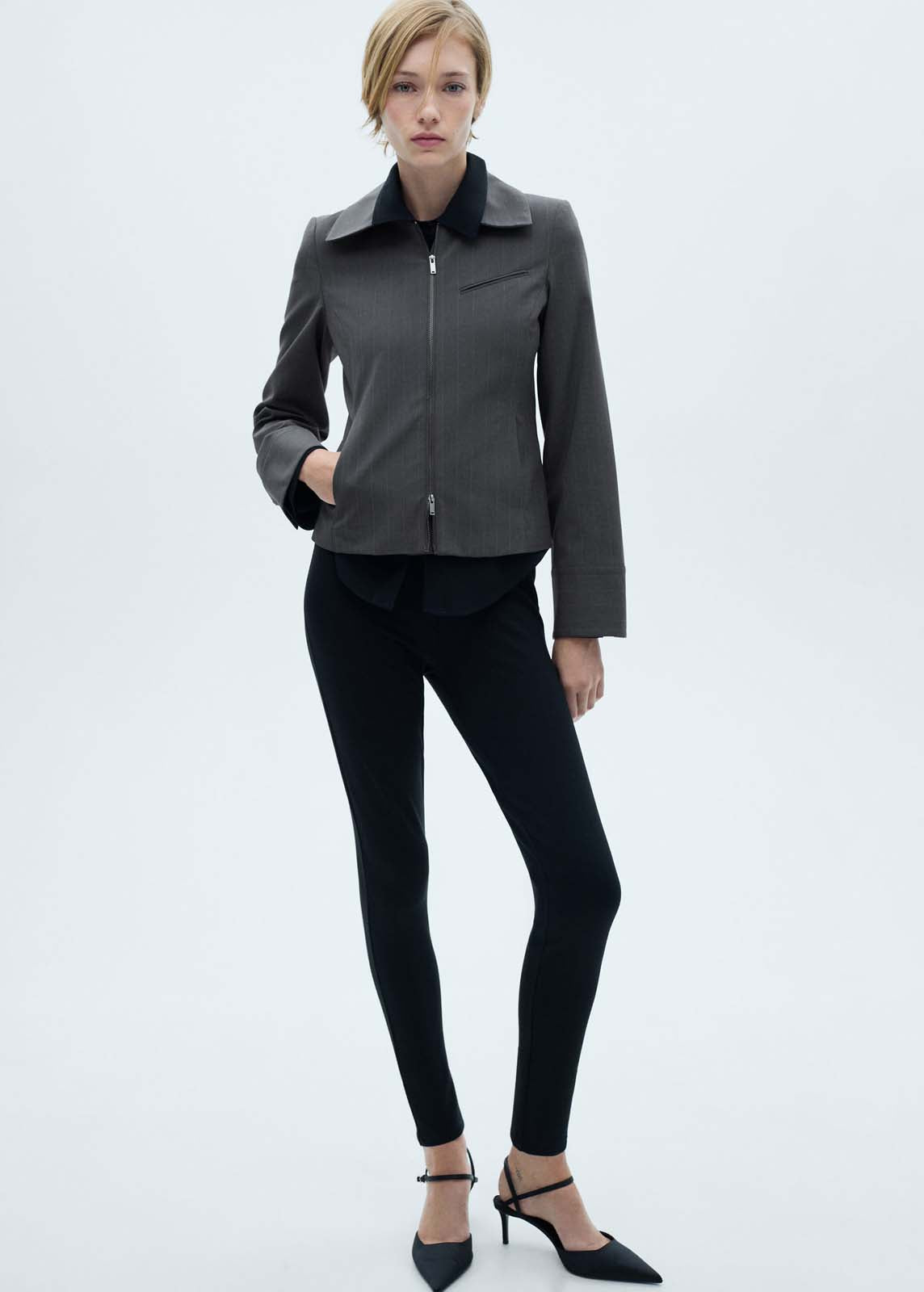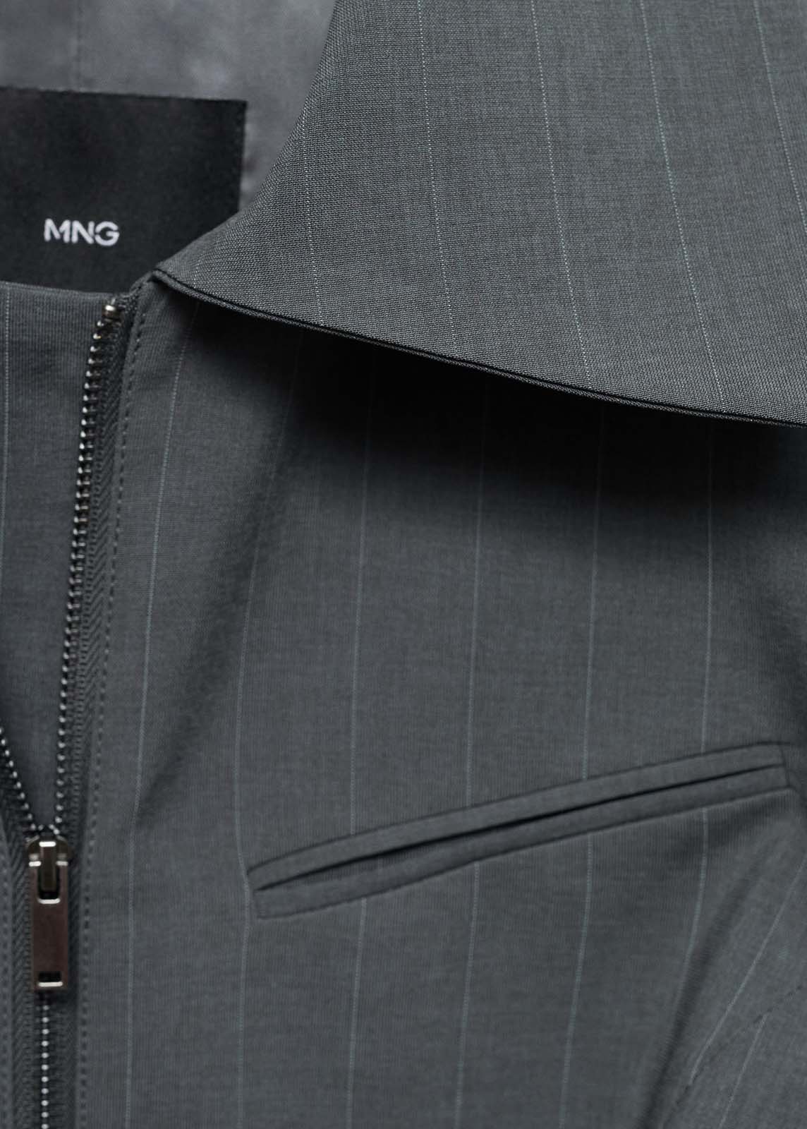 Bolsillo de ribete en el pecho,Total look,Diseño recto,Cuello camisero,Cierre de cremallera doble,Diseño de rayas,Diseño entallado,La modelo mide 1,81 y lleva una talla S/36,Manga larga