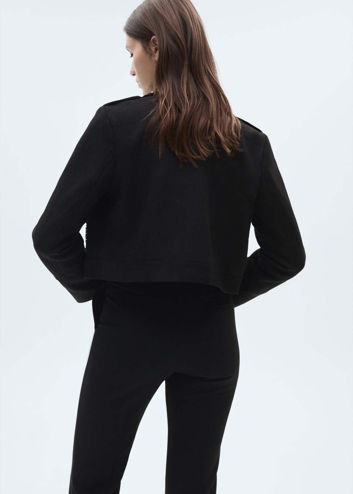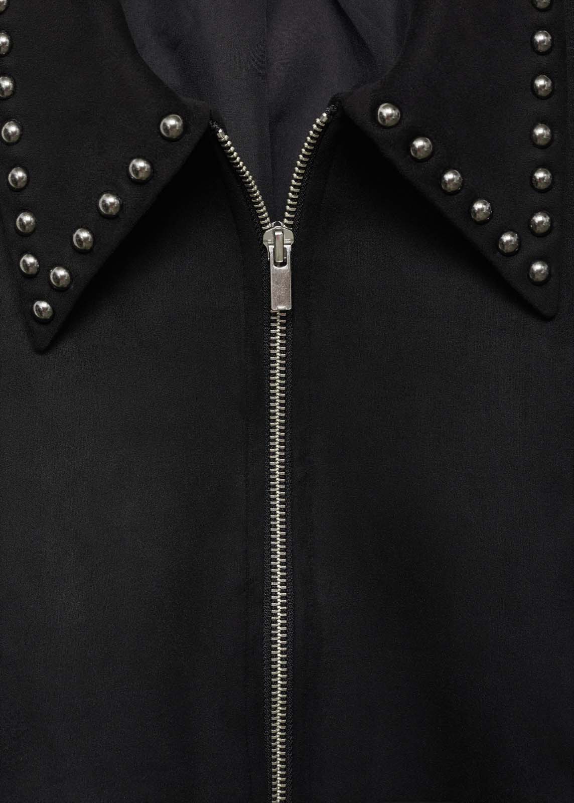 Detalle de tachuelas,Diseño recto,Cuello camisero,Cierre de cremallera en la parte delantera,Bolsillos laterales,Manga larga
