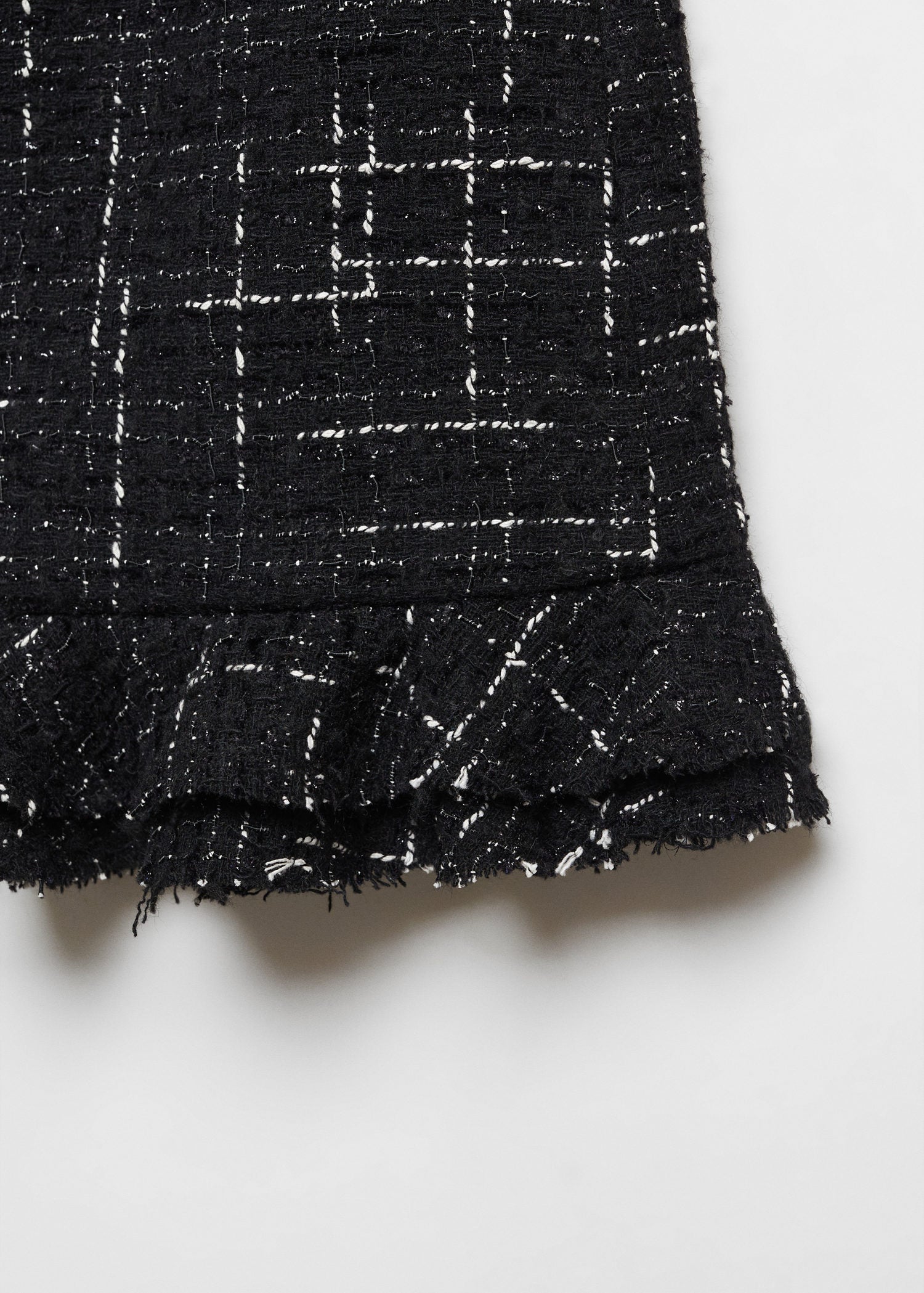 Falda tweed volante- Bajo asimétrico,Forro interior,Abertura lateral,Cierre lateral de cremallera,Diseño asimétrico,Tejido plisado,Diseño recto,Colección fiesta y ceremonia,Corte midi,Tirante anchoDiseño recto,Tejido tweed,Tejido mezcla de algodón y lana,Forro interior,Detalle de volante,Tiro bajo,Diseño corto,Cierre cremallera invisible en el lateral,Total look- No lavar, No usar lejia, No planchar, Limpiar en seco percloroetileno, No se puede usar secadoraNo lavar, No usar lejia, Plancha max 110°c, Limpiar en seco percloroetileno, No se puede usar secadora- COMPOSICIÓN: 32% ACRÍLICO, 21% POLIÉSTER, 17% ALGODÓN, 14% POLIAMIDA, 13% LANA, 3% VISCOSA FORRO: 96% POLIÉSTER, 4% ELASTANO