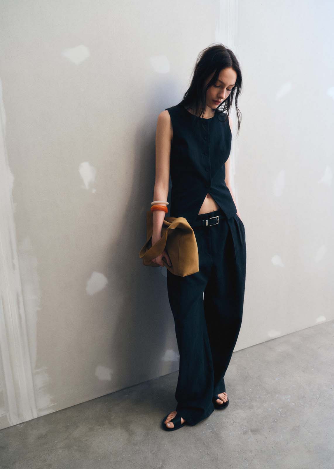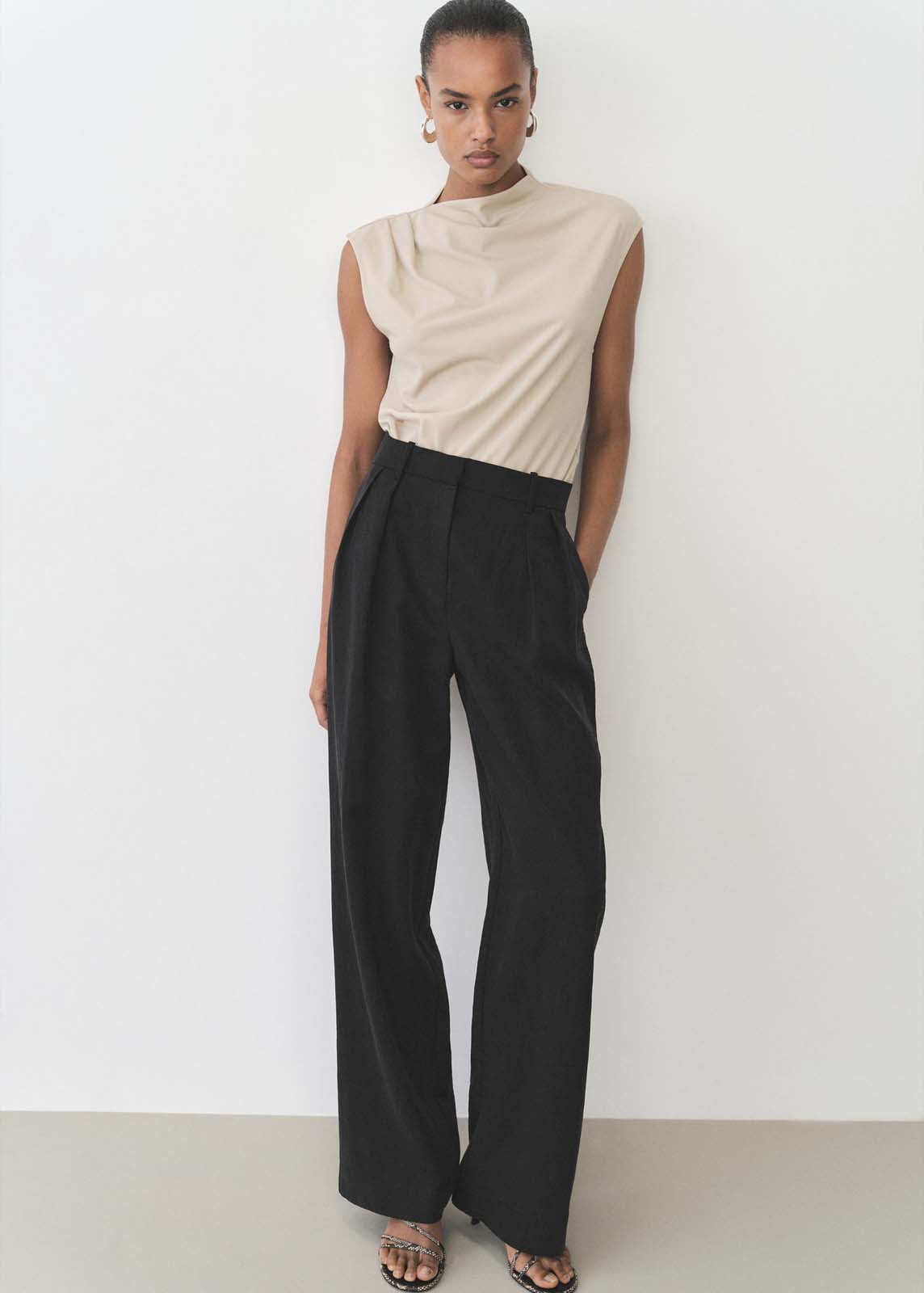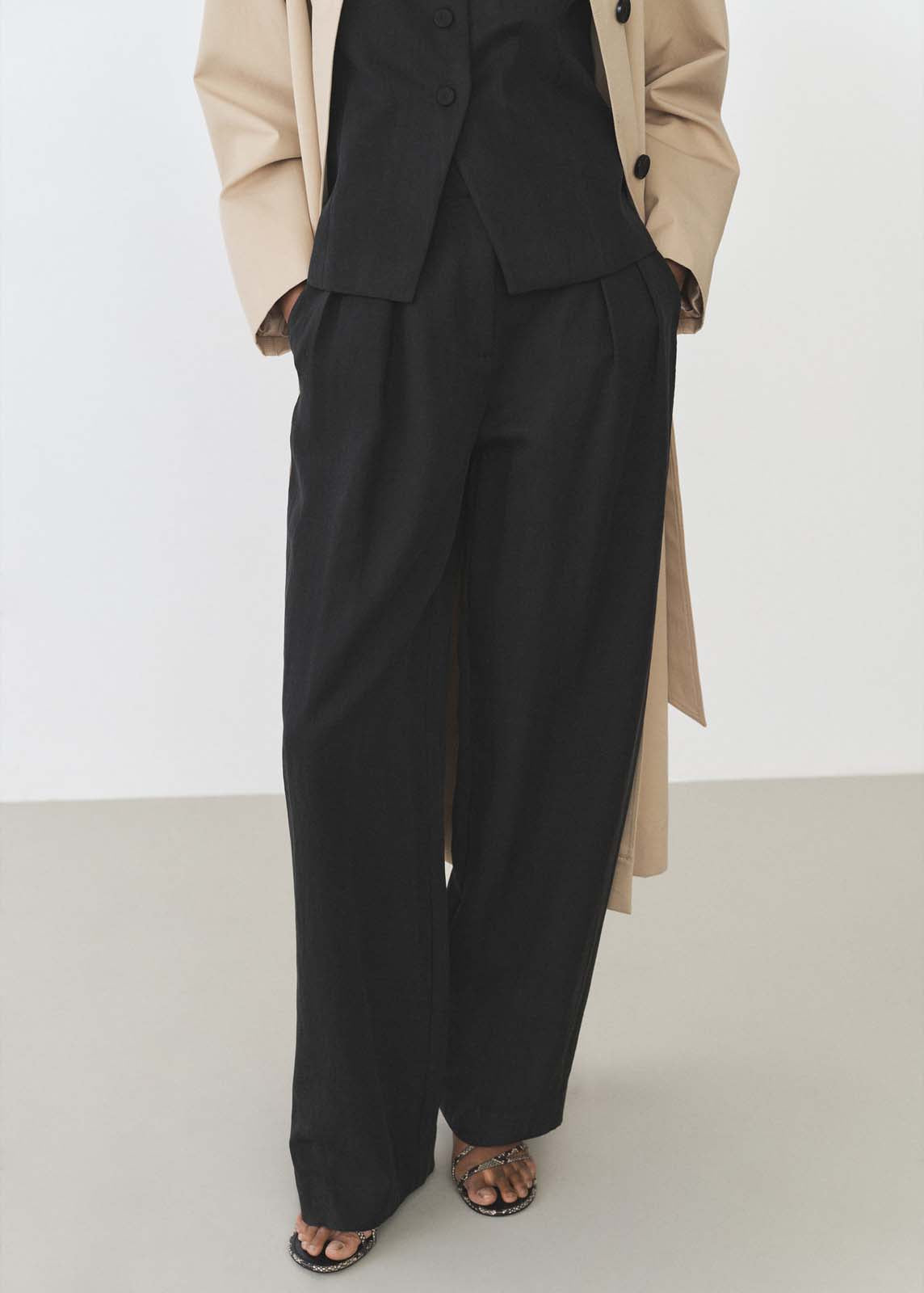 Cierre delantero de botón, gancho y cremallera,Dos bolsillos laterales,Total look,Tejido de lyocell,Diseño recto,Estilo traje,Diseño largo,Forro interior,Tiro alto