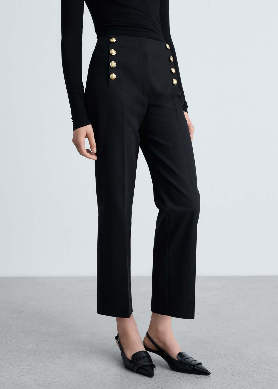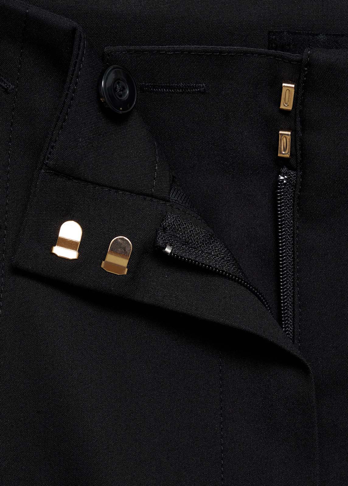 Botones efecto joya,Tiro medio,Diseño crop,Dos bolsillos laterales,Cierre oculto de botón, gancho y cremallera,Disponible Plus,Diseño recto,Diseño largo,Tejido mezcla de algodón,Forro interior