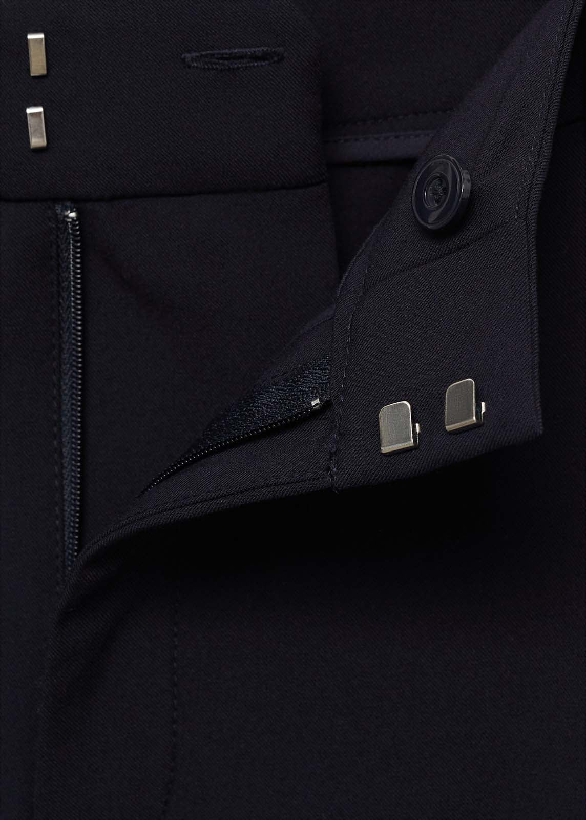 Cierre delantero de botón, gancho y cremallera ocultos con tapeta,Trabillas,Dos bolsillos laterales,Disponible Plus,Diseño recto,Detalle de pinzas delanteras,Diseño largo,Forro interior,Bolsillo de ribete en la parte posterior,Tiro alto