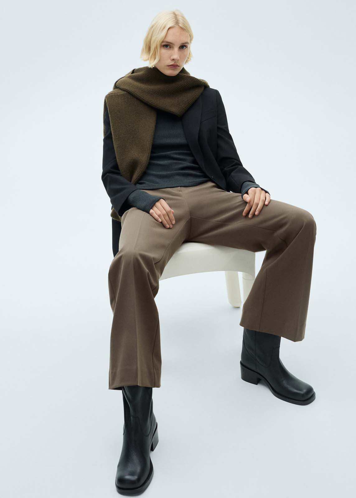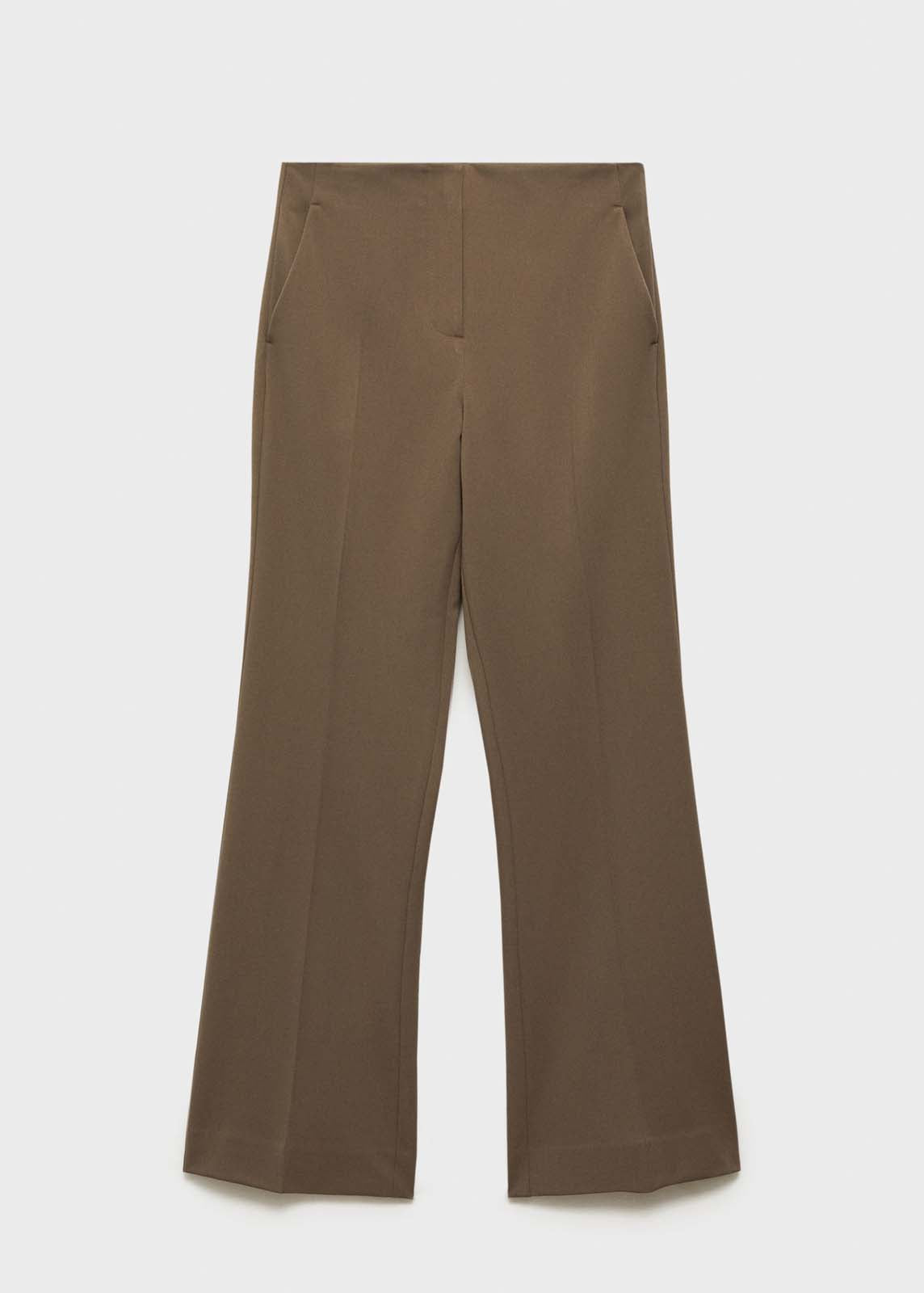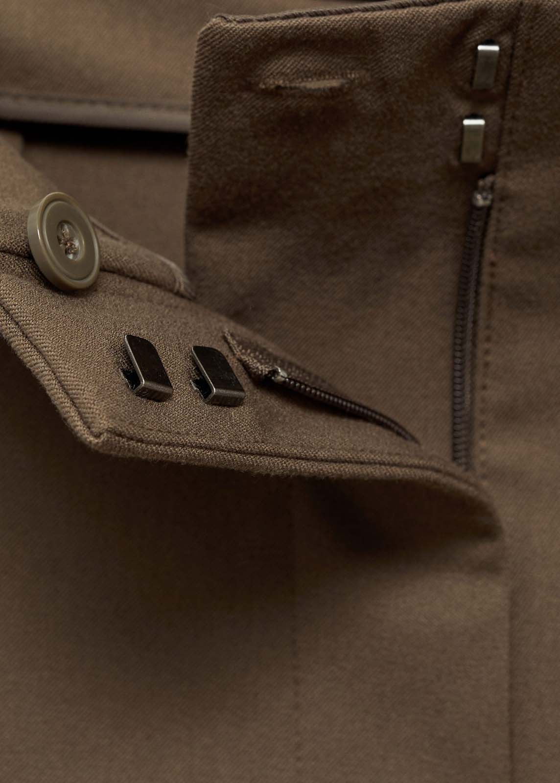 Tiro medio,Tejido ligero,Dos bolsillos laterales,Estilo flare,Diseño largo,Cierre de cremallera, botón y ganchos ocultos con tapeta,Forro interior