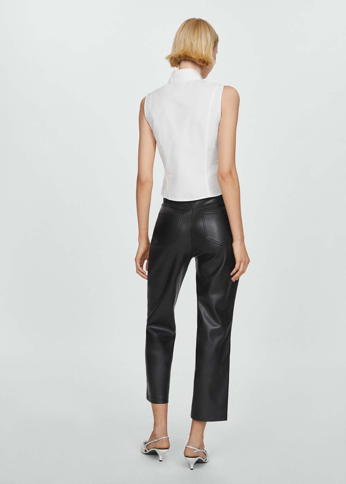 Diseño recto,Diseño largo,Trabillas,Cinco bolsillos,Cierre de cremallera y botón,Tiro medio,Efecto piel,Disponible Plus,El color crudo es exclusivo online,Looks de oficina