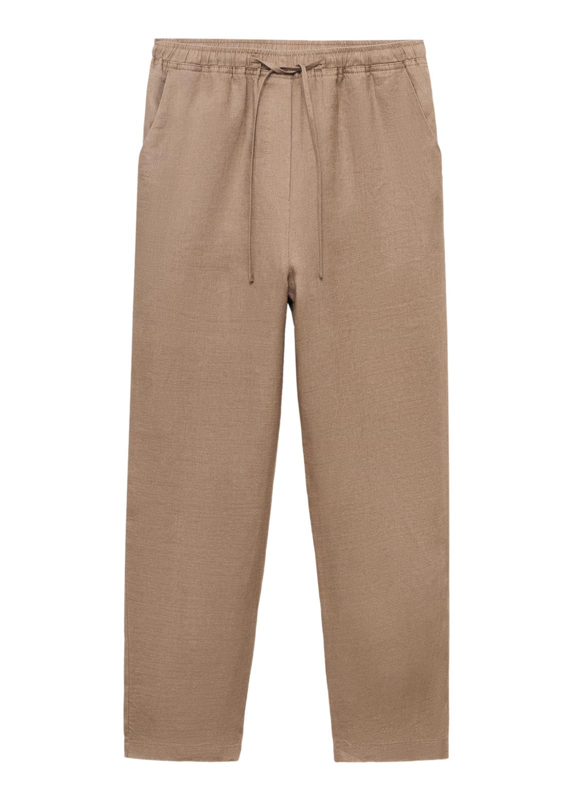 Cintura con goma elástica,Tiro medio,Producto en promoción,Sin cierre,Tejido 100% de lino,Dos bolsillos laterales,Disponible Plus,Diseño recto,Cordón ajustable,Diseño largo,Tiro alto
