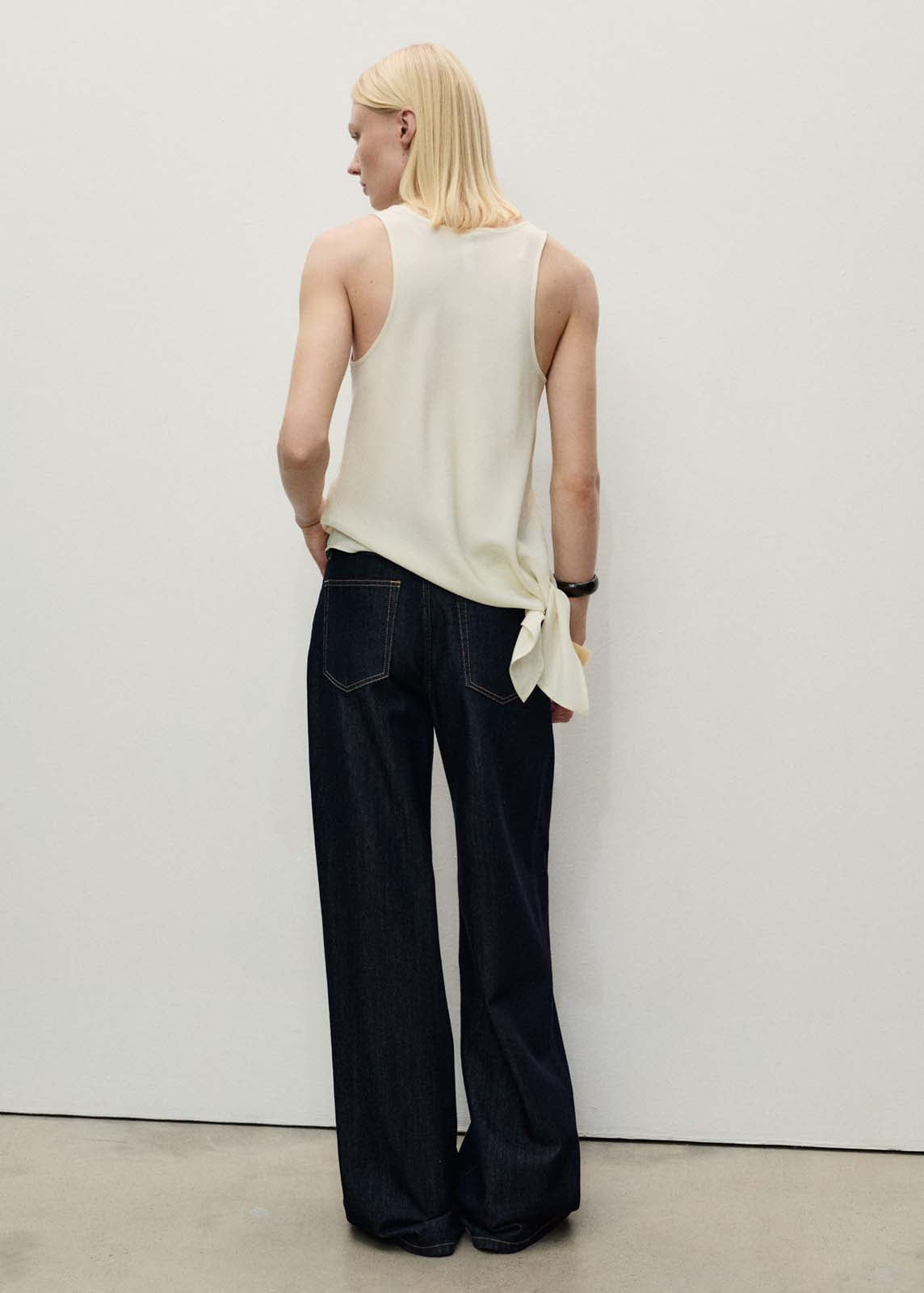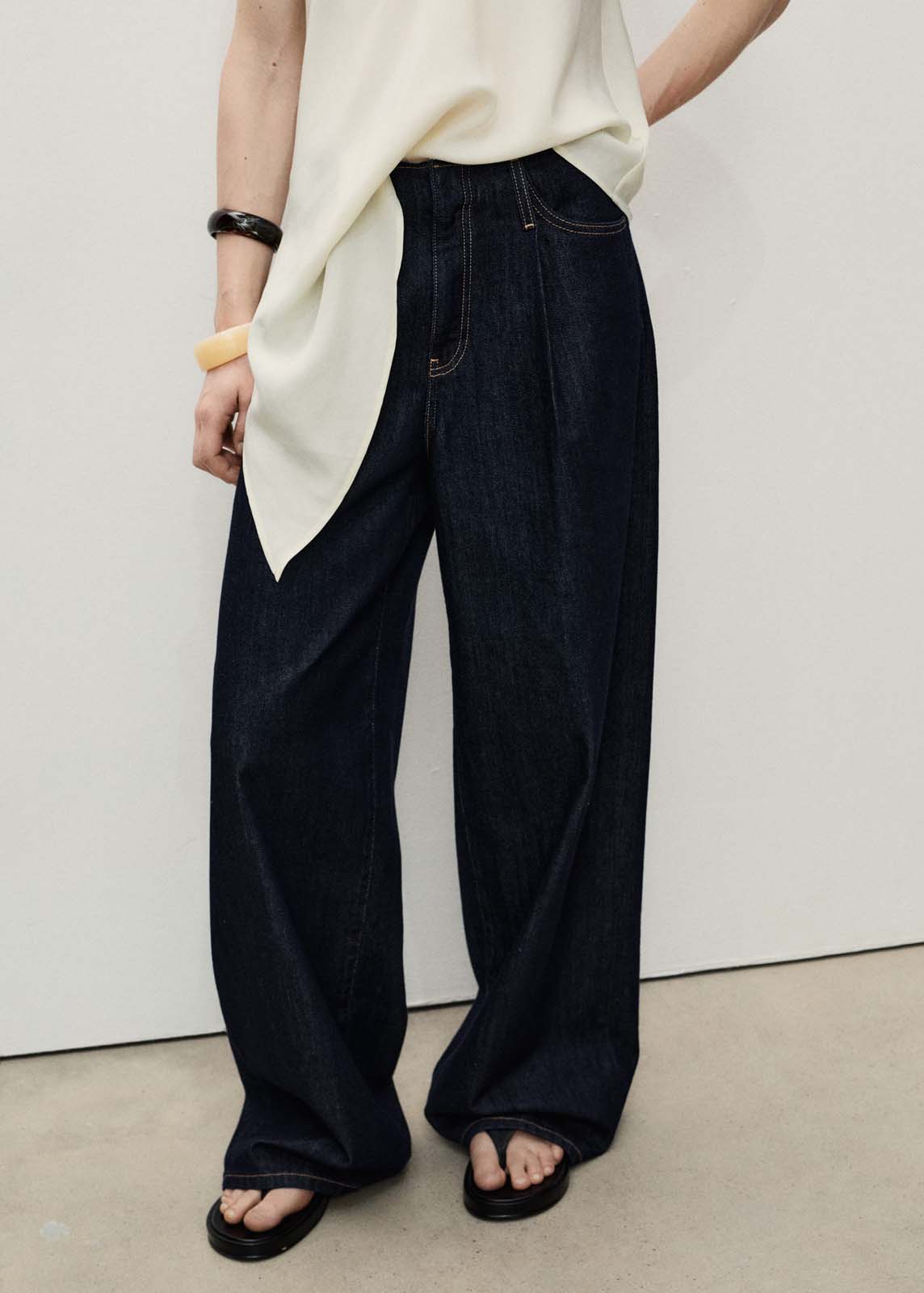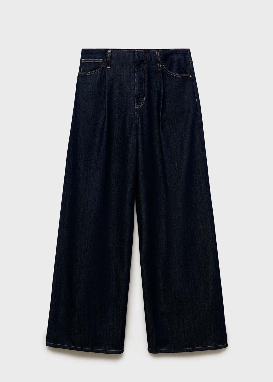 Tejido de denim,Diseño wideleg,Trabillas,Tiro medio,Cinco bolsillos,Cintura deshilachada,Diseño largo,Cierre de cremallera, botón y ganchos ocultos con tapeta
