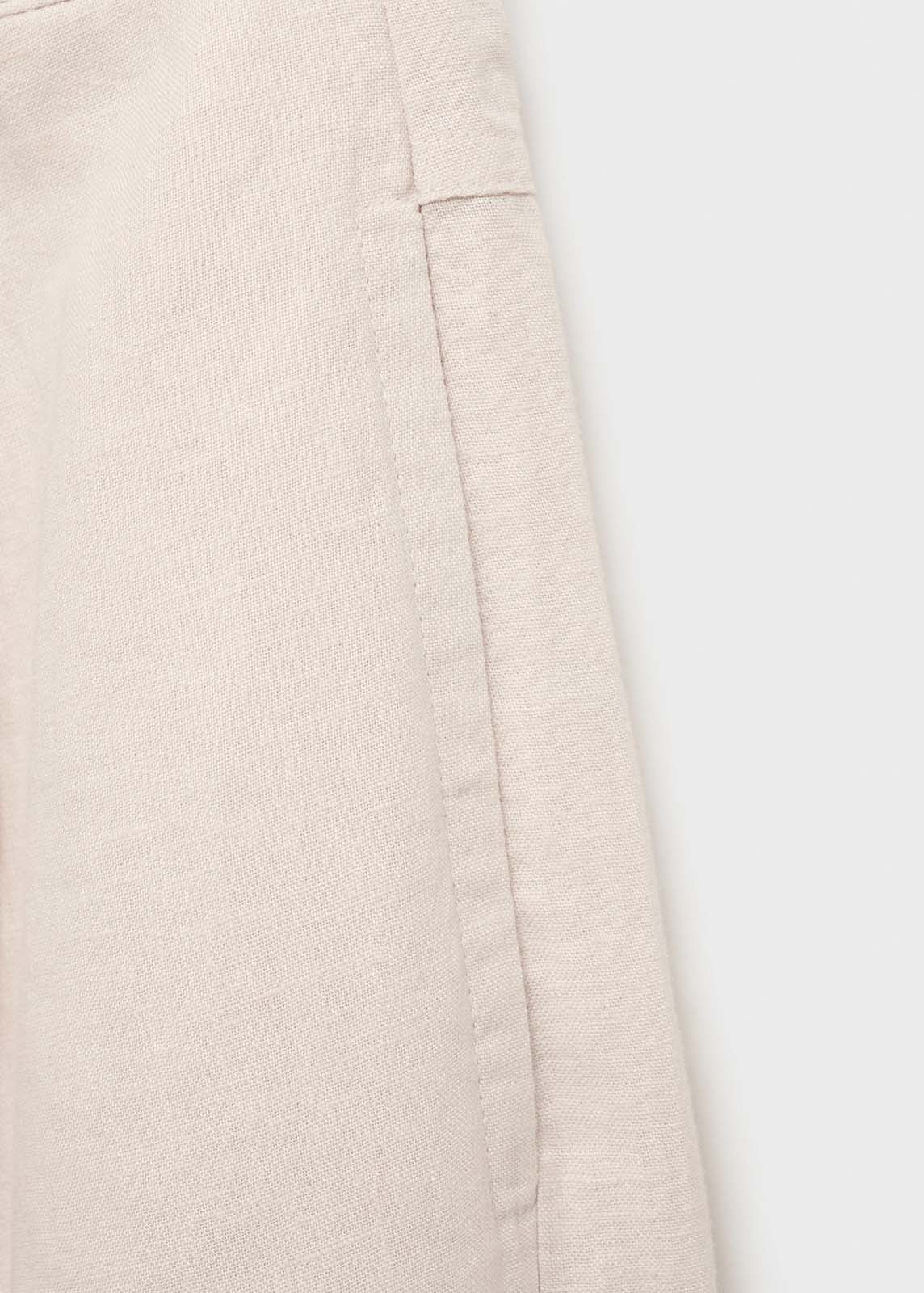 Tiro medio,Cierre delantero de cremallera y botón,Tejido mezcla de lino,Dos bolsillos laterales,Diseño recto,Botones efecto carey,Diseño largo
