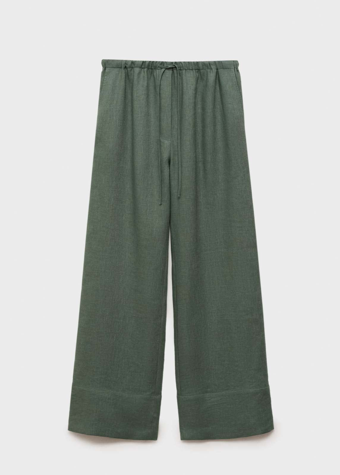Cintura con goma elástica,Tiro medio,Sin cierre,Dos bolsillos laterales,Cinta en la cintura con cierre de lazo,Disponible Plus,Total look,Diseño recto,Diseño largo