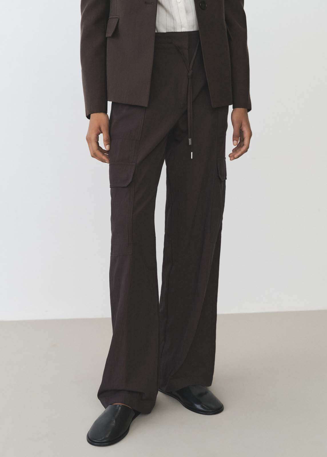 Trabillas,Cintura con goma elástica,Tejido fluido,Tiro medio,Dos bolsillos de parche y solapa en la pierna,Sin cierre,Dos bolsillos laterales,Diseño cargo,Diseño recto