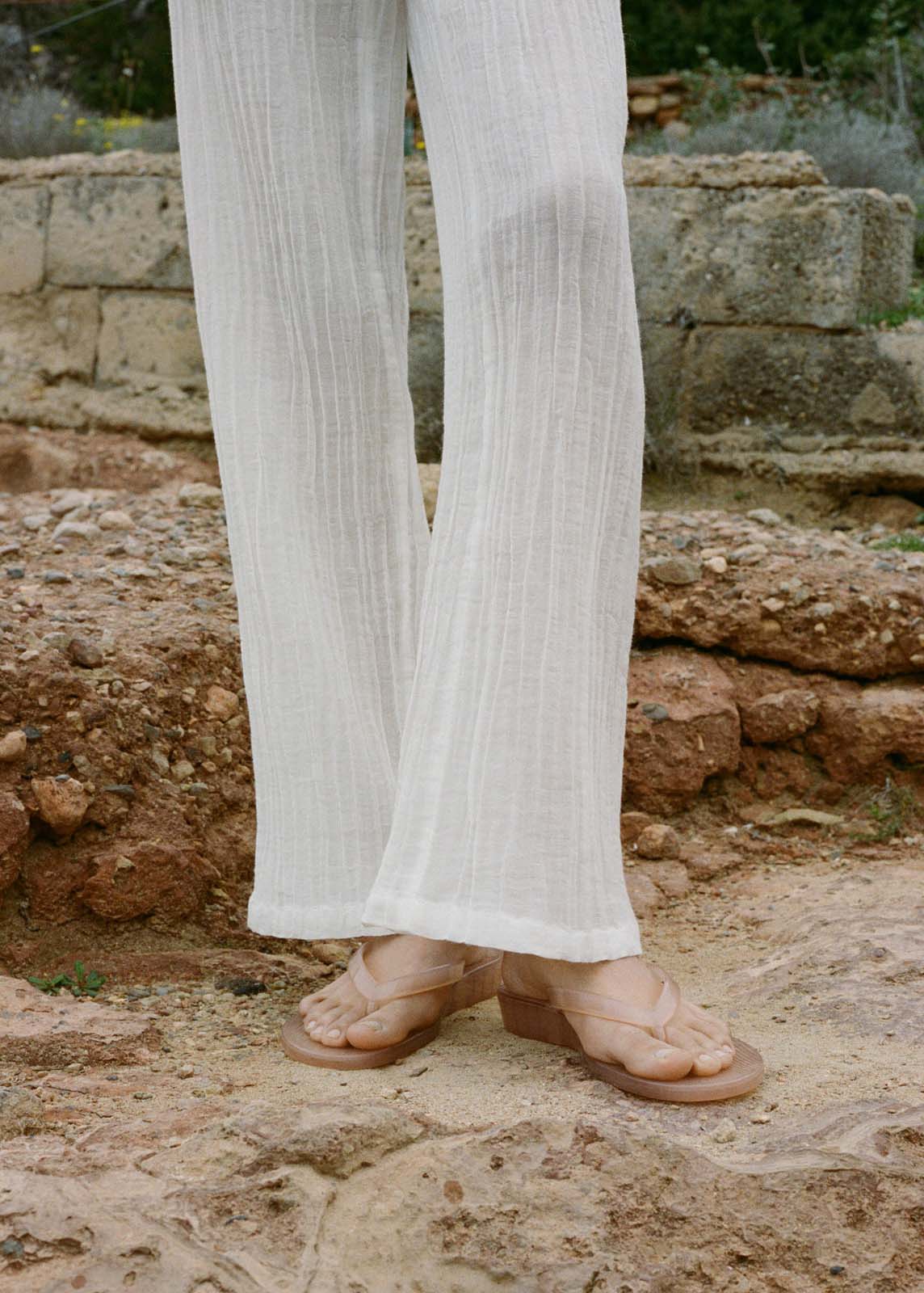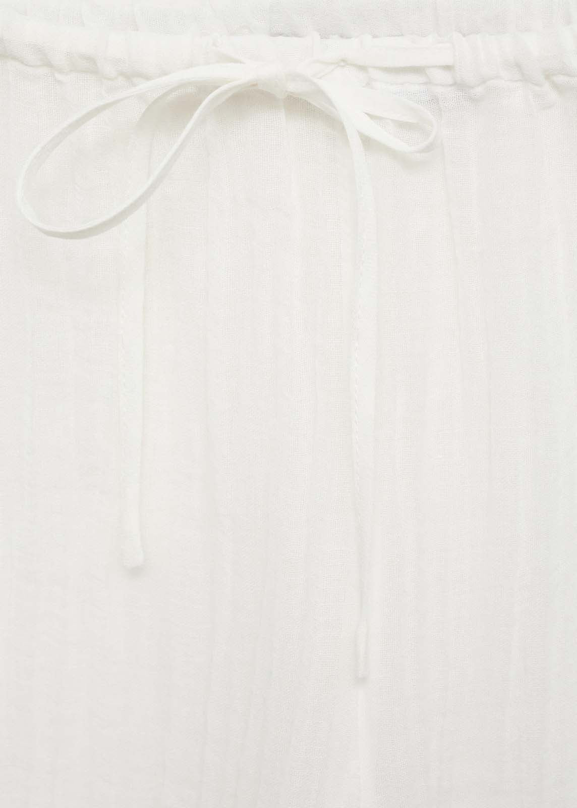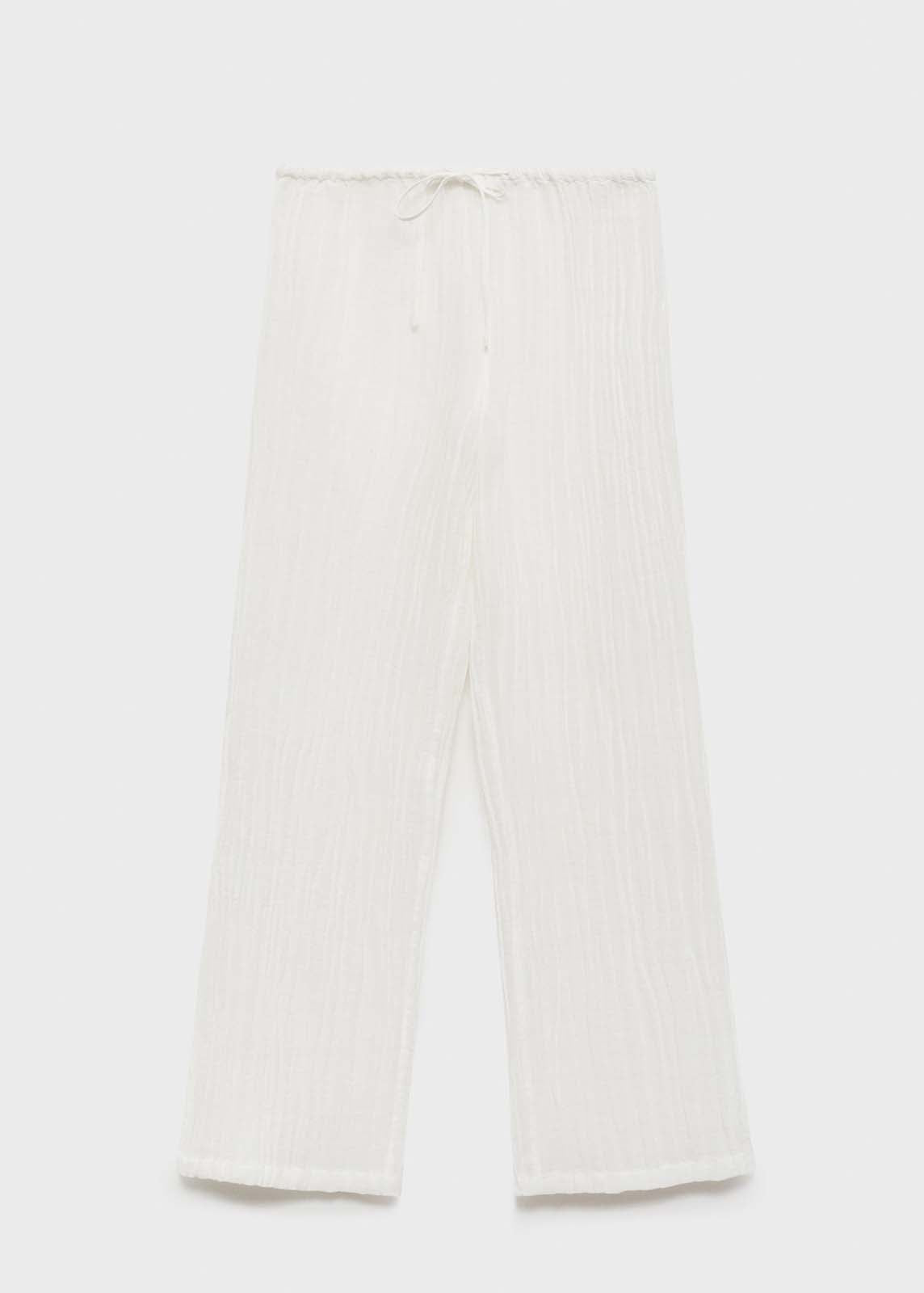 Cintura con goma elástica,Tiro medio,Tejido mezcla de ramio y algodón,Sin cierre,Lazo ajustable,Total look,Diseño recto,Diseño largo