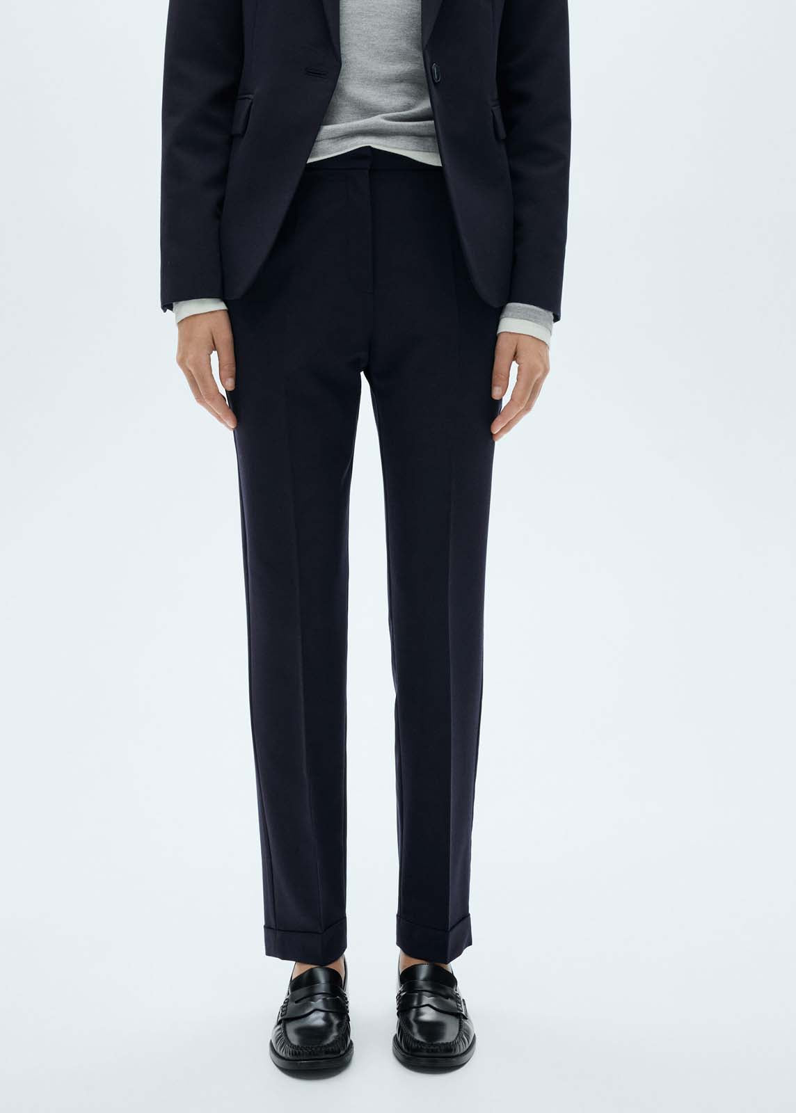 Diseño estándar,Trabillas,Tiro medio,Dos bolsillos de ribete en la parte posterior,Dos bolsillos laterales,Disponible Plus,Total look,Diseño recto,Estilo traje,La modelo mide 1,78 y lleva una talla S/36