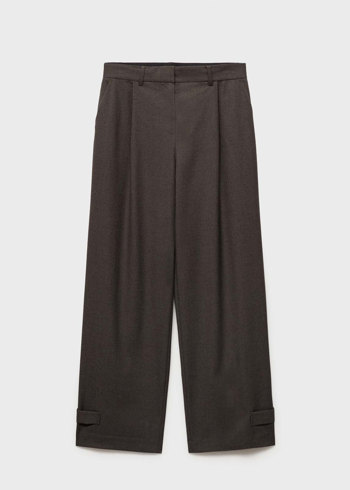 Diseño wideleg,Trabillas,Tejido fluido,Tiro medio,Cierre delantero de cremallera, gancho y doble botón,Detalle de pinzas,Dos bolsillos laterales,Diseño largo,Forro interior,Bajo abotonado