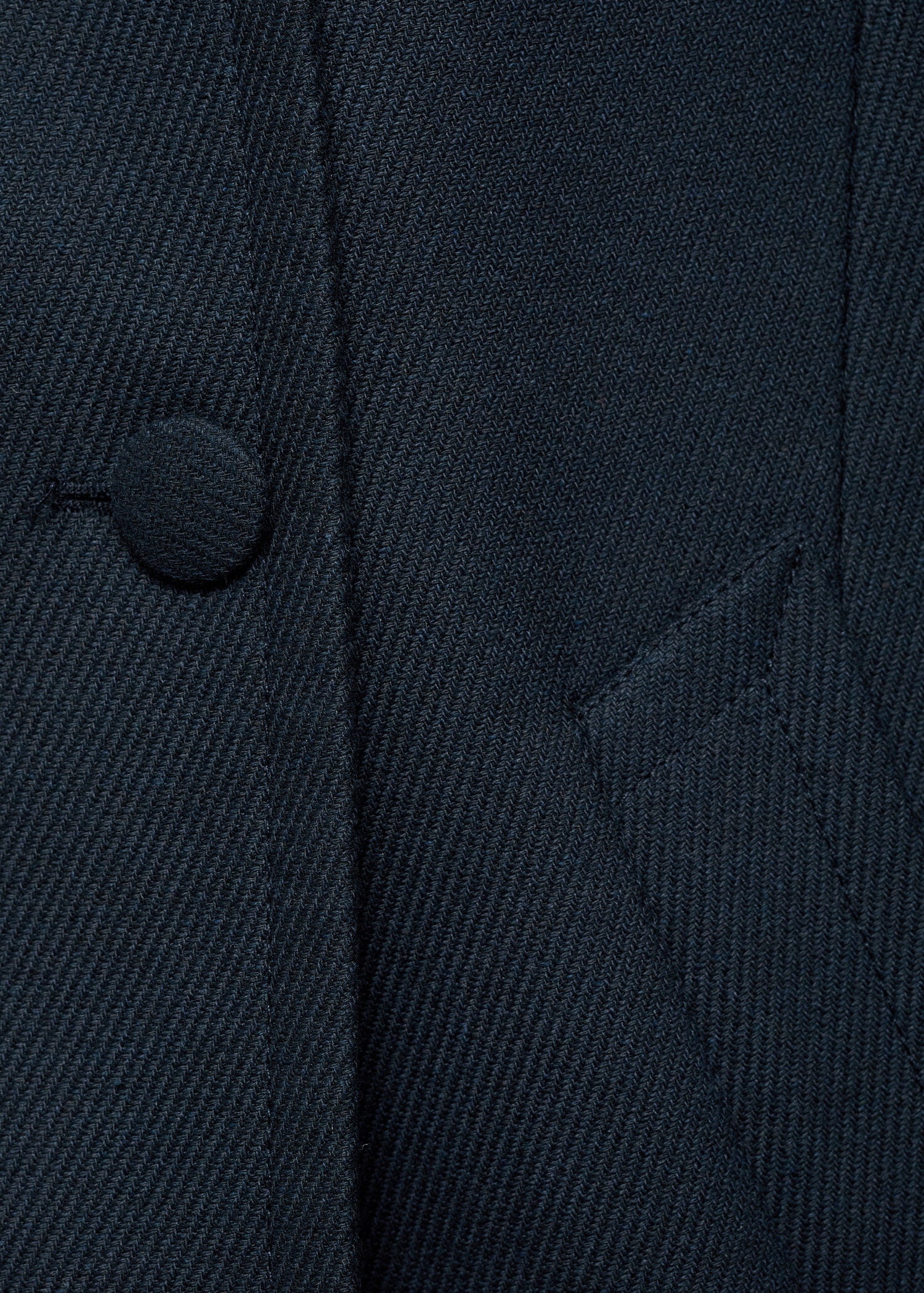 Cuello pico con solapa,Dos bolsillos de ribete laterales,Cierre de doble botonadura,Solapas con muesca,Diseño recto,Tejido mezcla de algodón,Forro interior,Manga larga