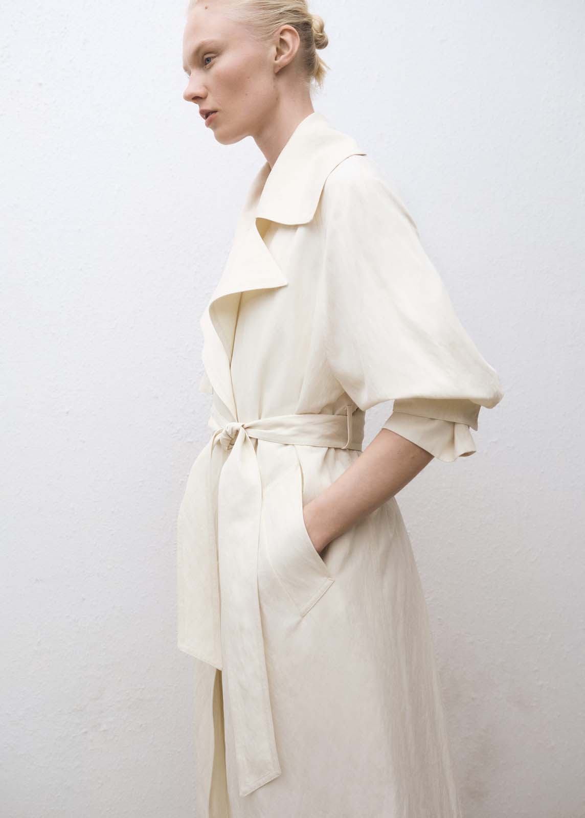 Abertura posterior en el bajo,Estructura pesada,Cuello pico con solapa,Esta prenda pertenece a nuestra colección de evento, diseñada para convertirte en la invitada perfecta en cualquier fiesta, boda o ceremonia,Manga larga con trabillas,Colección Selection,Solapas con muesca,Cuello de solapa ancha,Dos bolsillos laterales,Cinturón desmontable,Diseño oversize,Diseño largo,Cinturón tipo batín,Forro interior