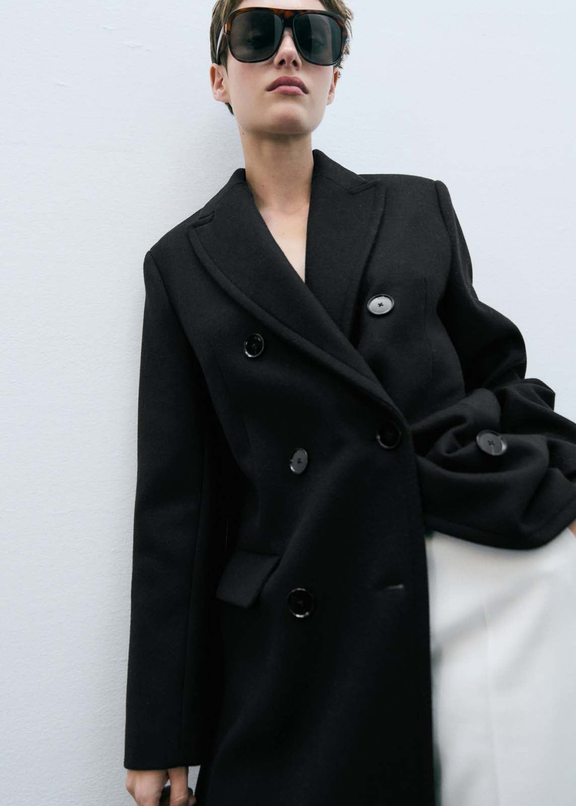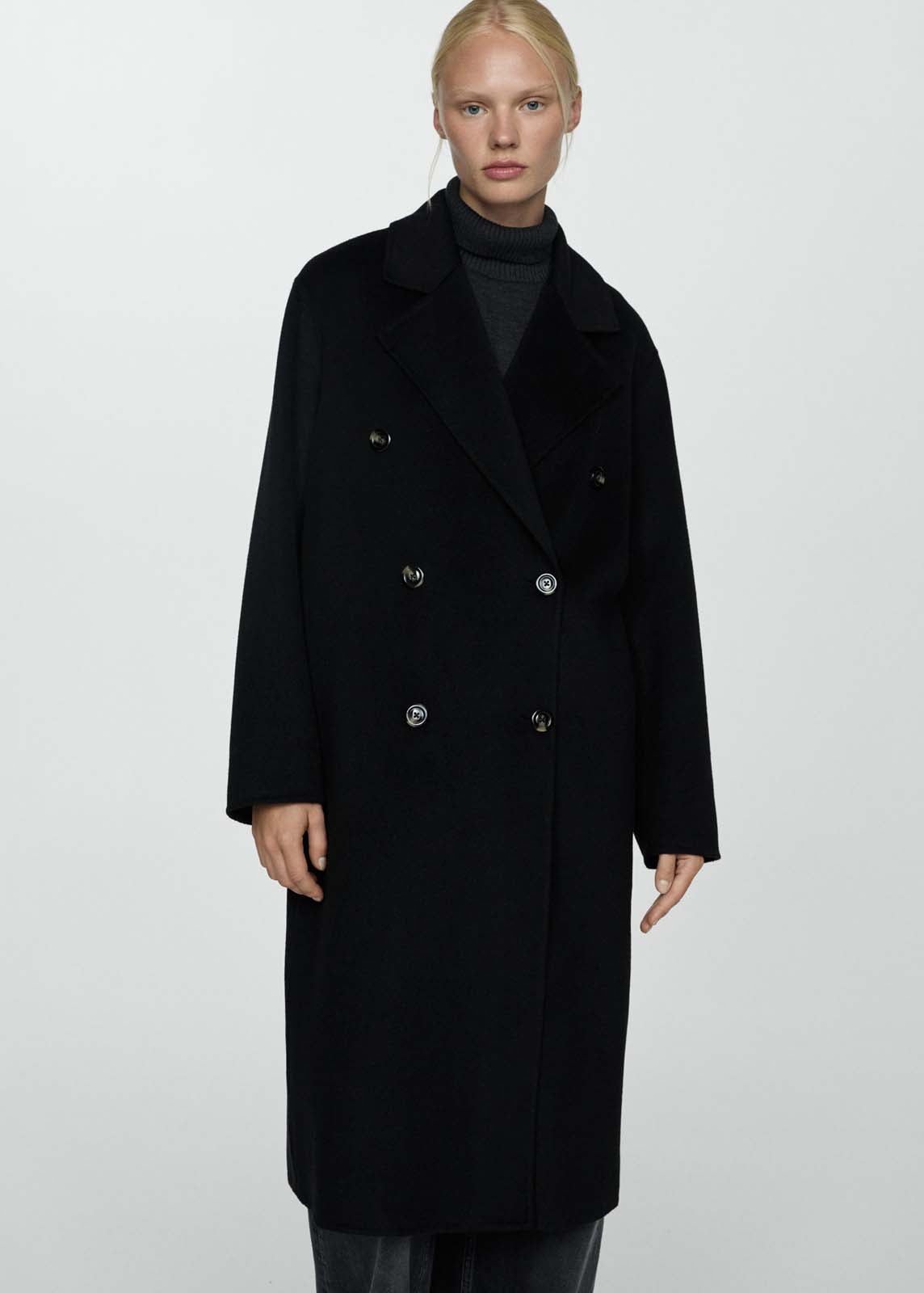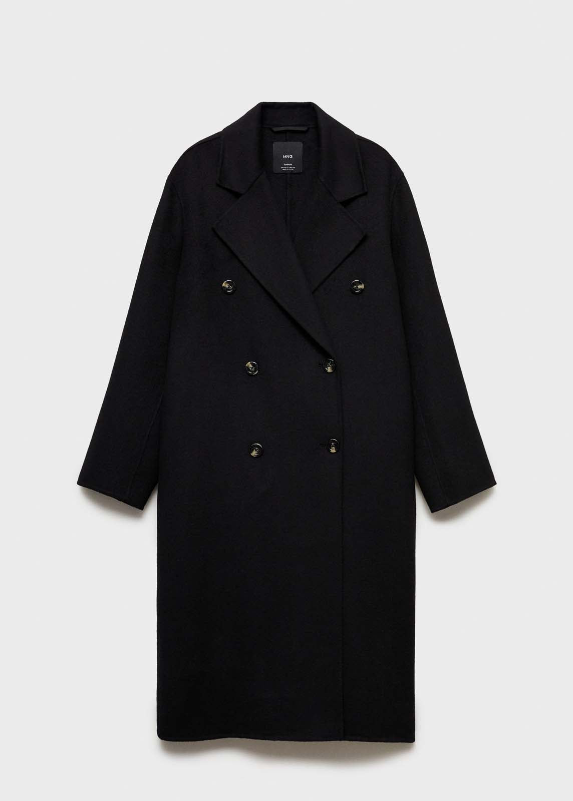 Abertura posterior en el bajo,Tejido con lana,Cuello pico con solapa,Diseño doble botonadura,Cierre de doble botonadura,Solapas con muesca,Dos bolsillos laterales,Costura del hombro caída,Diseño oversize,Diseño largo,Manga larga