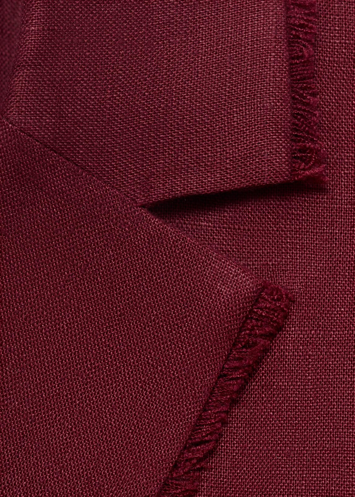 Cuello pico con solapa,Dos bolsillos delanteros,Solapas con muesca,Tejido 100% de lino,Terminaciones deshilachadas,Cierre de botón en la parte delantera,Total look,Diseño recto,Forro interior,Manga larga