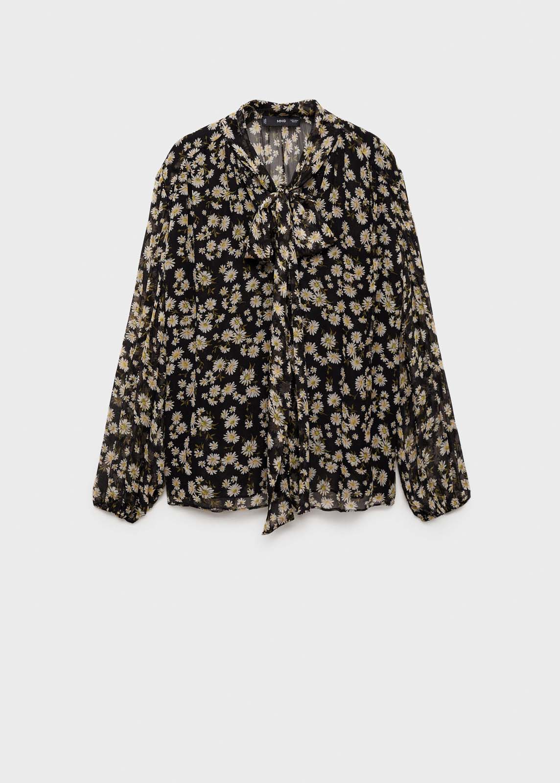 Detalle de lazo en el cuello,Tejido de gasa,Cuello pico,Cierre de botones en la parte delantera,Disponible Plus,Total look,Diseño recto,Diseño semitransparente,Estampado de flores,Forro interior,Manga larga