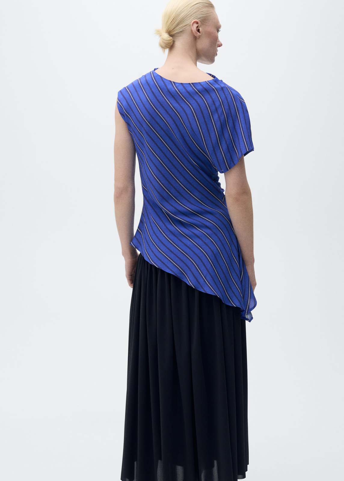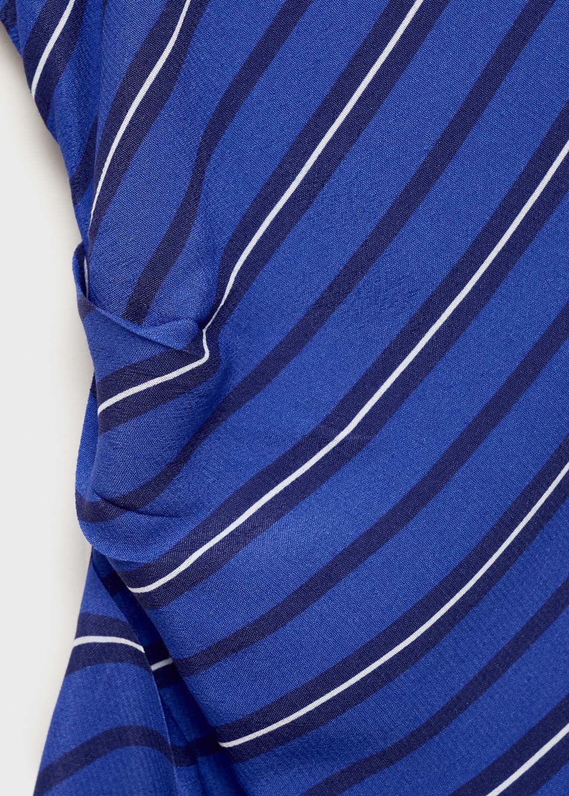 Manga corta,Estampado de rayas,Cuello drapeado,Diseño asimétrico,Cierre de cremallera lateral,Cintura drapeada