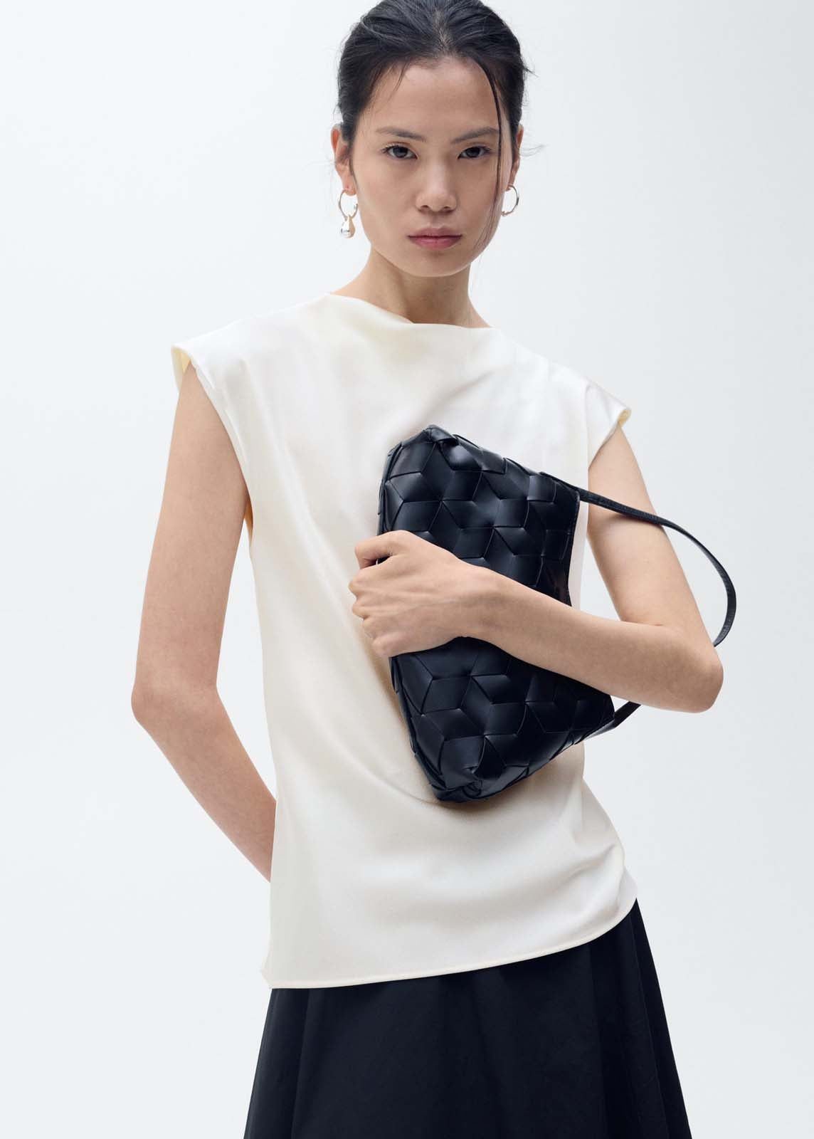 Manga corta,Cuello drapeado,Tejido satinado,Diseño recto,Cierre de cremallera en la parte posterior