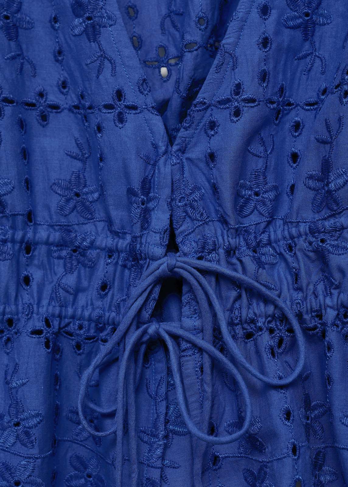 Tejido con bordado inglés,Fruncido elástico en la cintura,Diseño recto,Cuello de pico,Cierre de lazos en la parte delantera,Tejido de algodón,Manga larga con puños elásticos y fruncidos