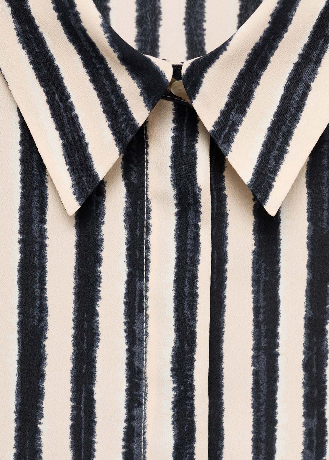 Cierre de botones oculto en la parte delantera,Estampado de rayas,Tejido fluido,Manga larga con puños abotonados,Diseño recto,Cuello camisero