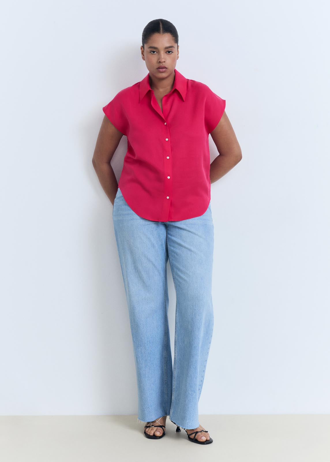 Cierre de botones en la parte delantera,Disponible Plus,Tejido de lyocell,Diseño recto,Cuello camisero,Sin mangas