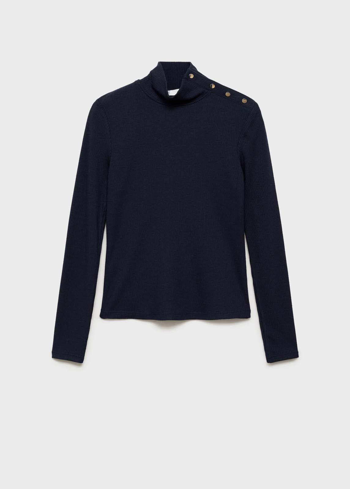 Tejido de punto de canalé,Diseño estándar,Tejido ligero,Slim fit,Cierre de botones en el hombro,Botones metálicos,Cuello perkins,Manga larga